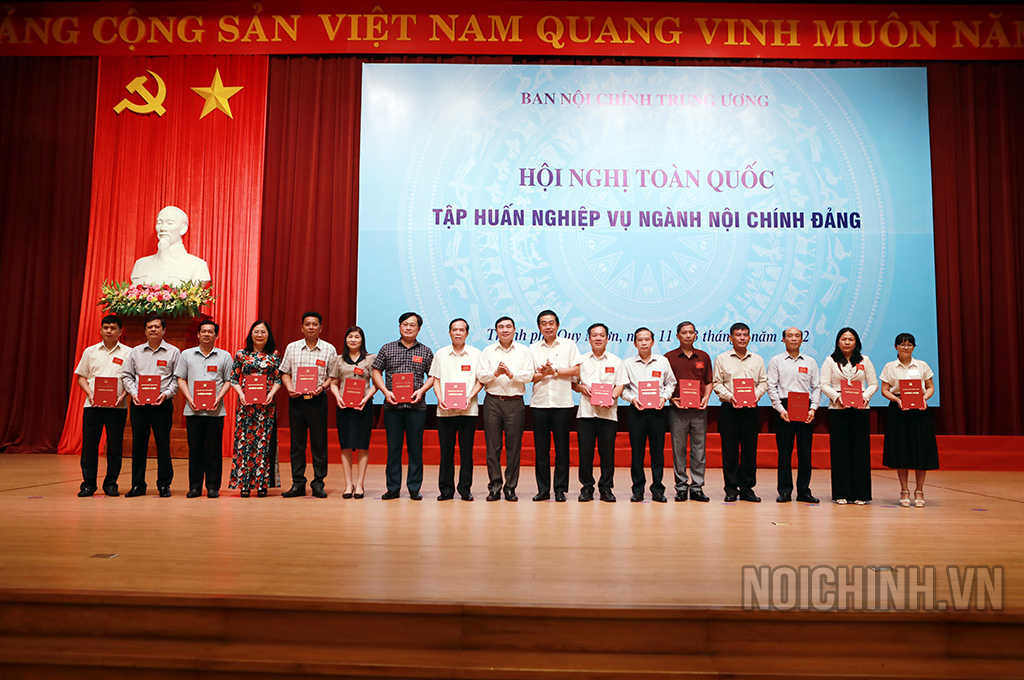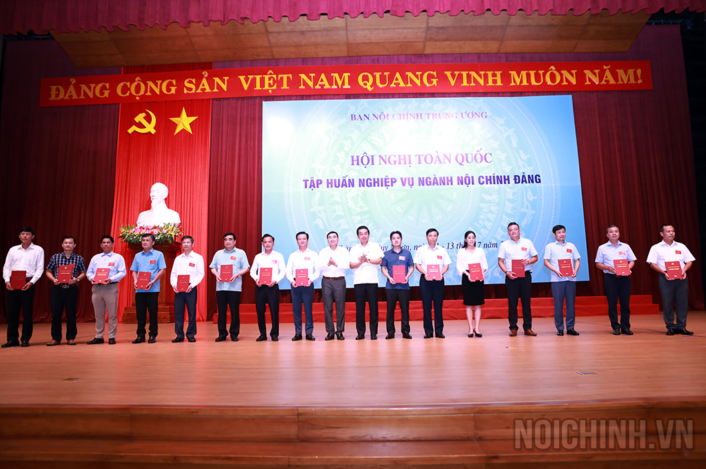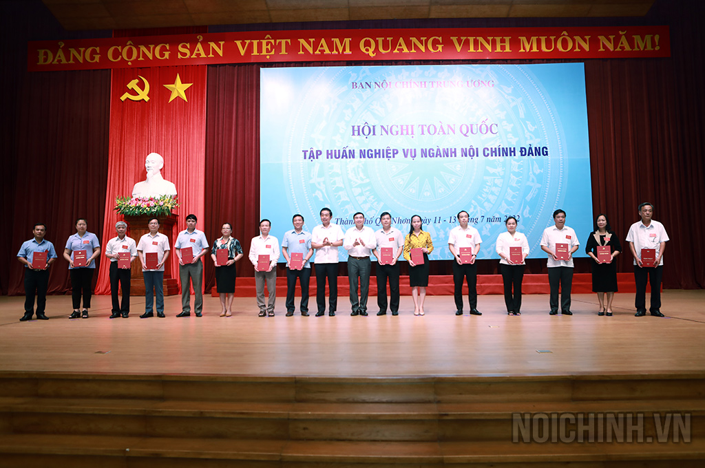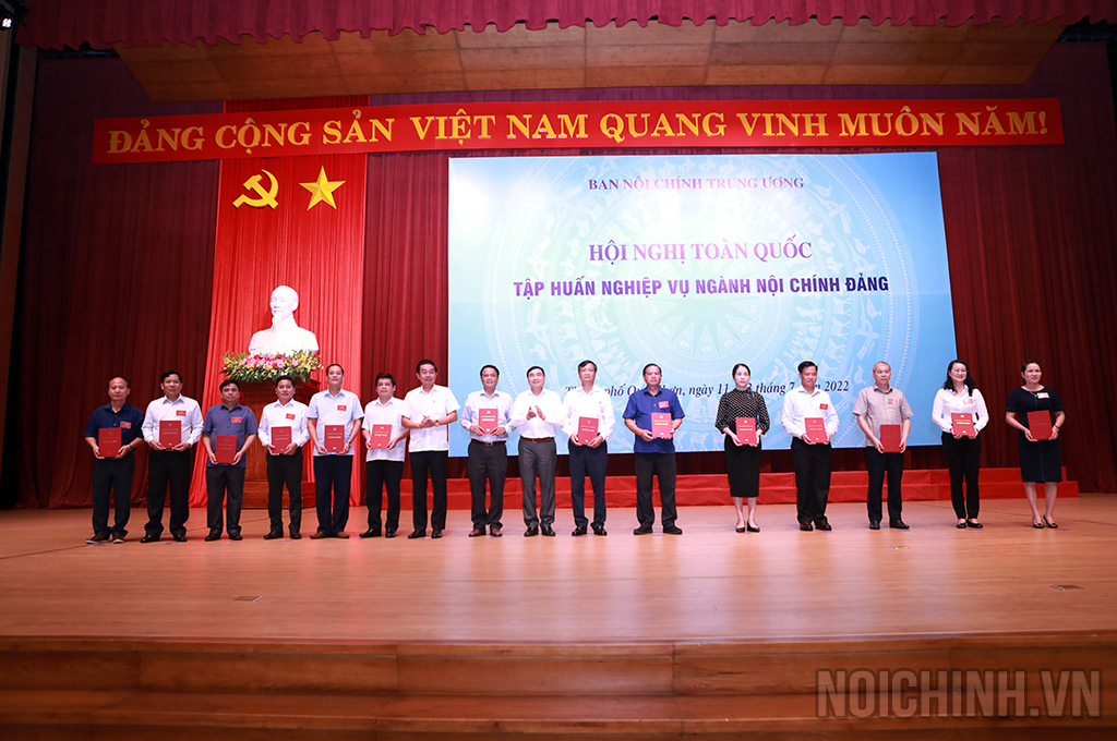 | Đồng chí Trần Quốc Cường, Ủy viên Trung ương Đảng, Phó trưởng Ban Nội chính Trung ương trao giấy chứng nhận hoàn thành Chương trình bồi dưỡng kiến thức nghiệp vụ về công tác nội chính, phòng, chống tham nhũng, tiêu cực và cải cách tư pháp của Ban Nội chính Trung ương |