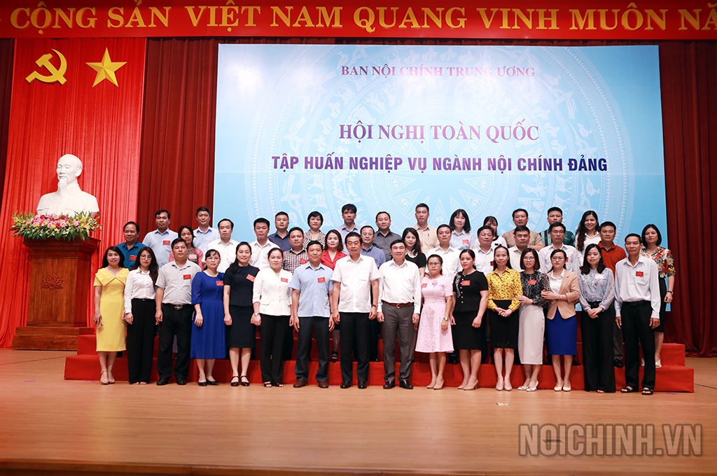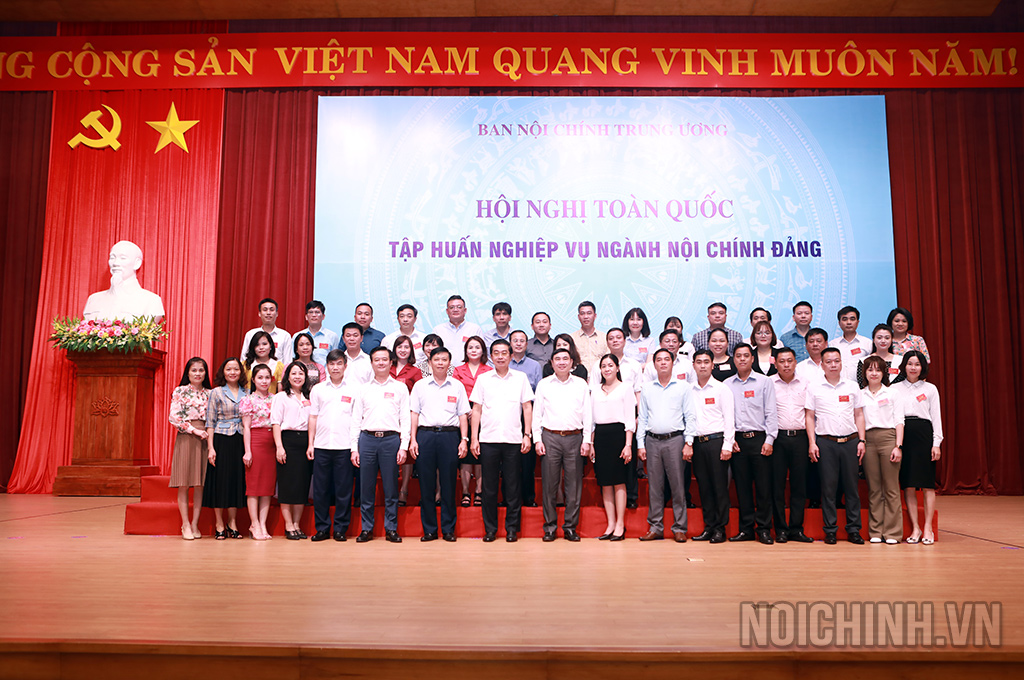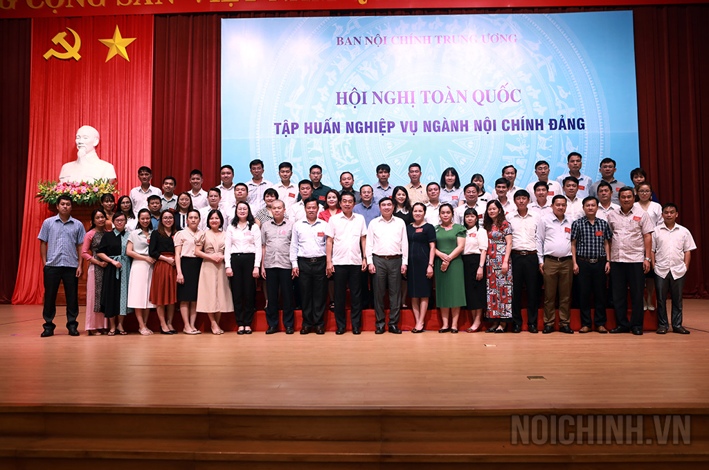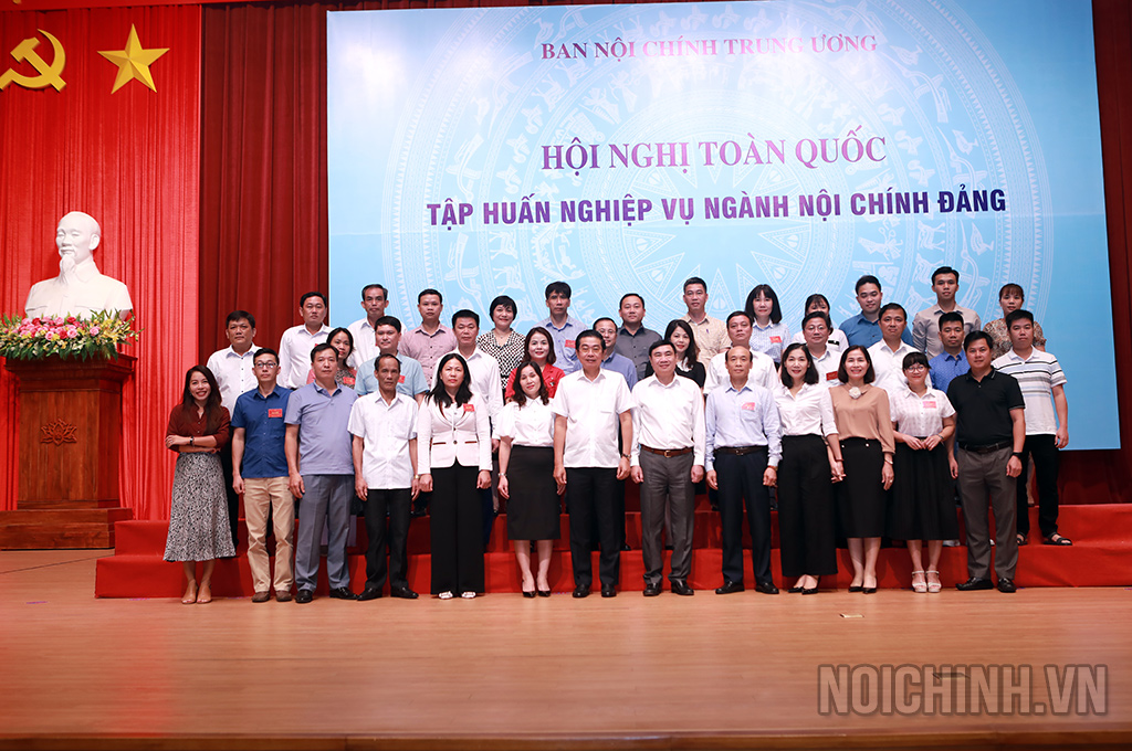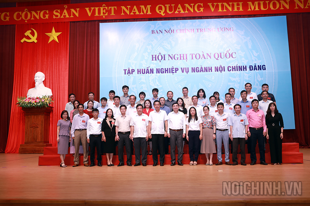 Các đồng chí: Võ Văn Dũng, Ủy viên Trung ương Đảng, Phó Trưởng ban Thường trực Ban Nội chính Trung ương, Ủy viên Ban Chỉ đạo Trung ương về phòng, chống tham nhũng, tiêu cực; Trần Quốc Cường, Ủy viên Trung ương Đảng, Phó trưởng Ban Nội chính Trung ương và lãnh đạo, công chức Ban Nội chính Trung ương chụp ảnh lưu niệm với các đại biểu dự Hội nghị tập huấn