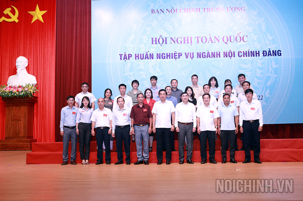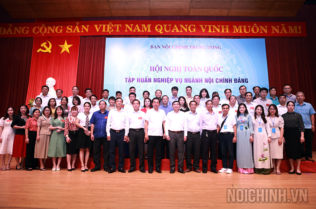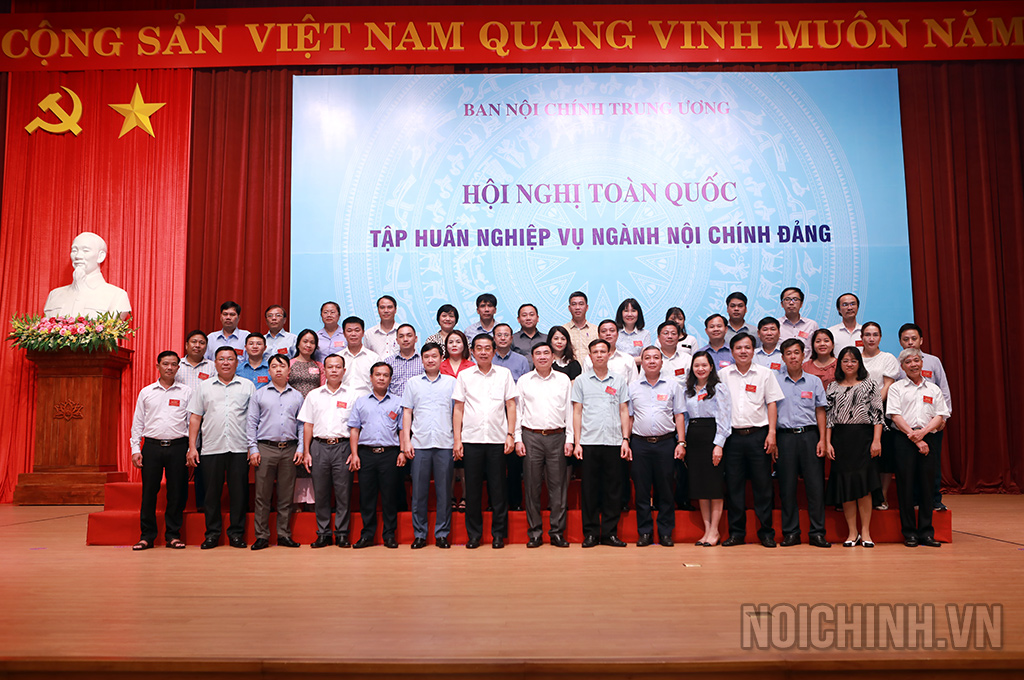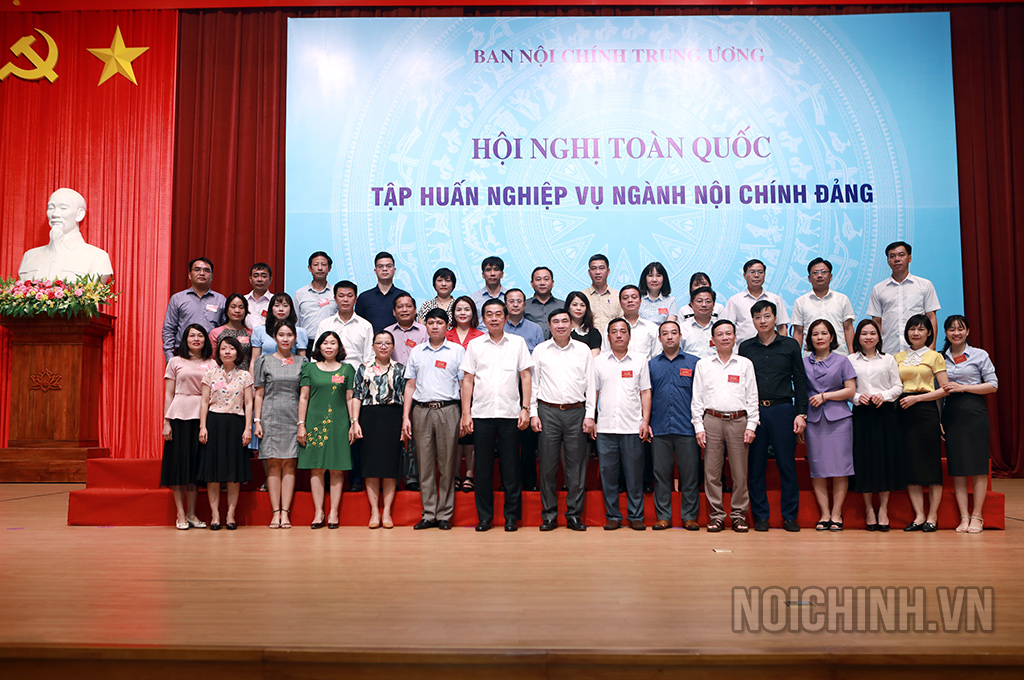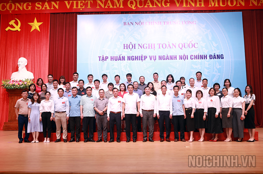 Các đồng chí: Võ Văn Dũng, Ủy viên Trung ương Đảng, Phó Trưởng ban Thường trực Ban Nội chính Trung ương, Ủy viên Ban Chỉ đạo Trung ương về phòng, chống tham nhũng, tiêu cực; Trần Quốc Cường, Ủy viên Trung ương Đảng, Phó trưởng Ban Nội chính Trung ương và lãnh đạo, công chức Ban Nội chính Trung ương chụp ảnh lưu niệm với các đại biểu dự Hội nghị tập huấn