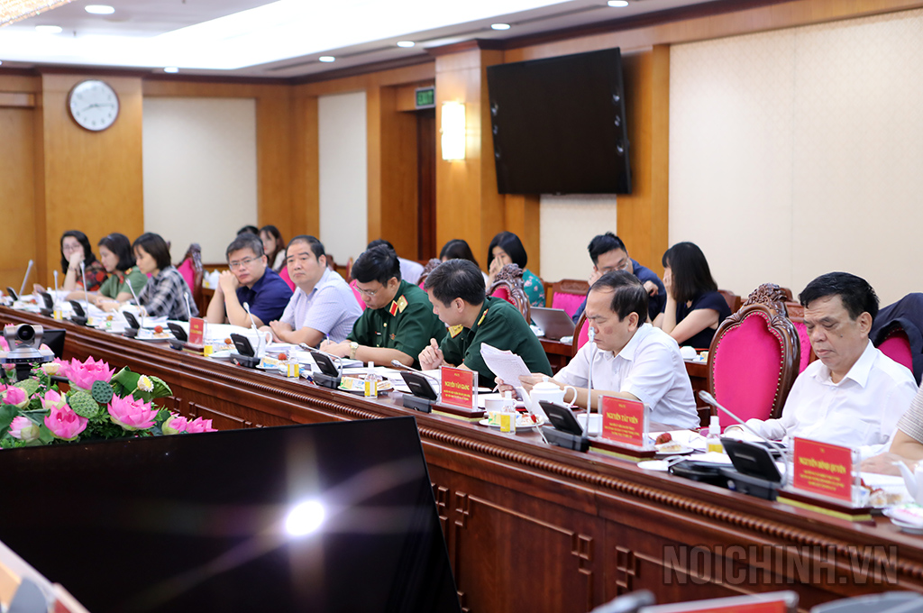 | Đồng chí Nguyễn Thái Học, Phó trưởng Ban Nội chính Trung ương, Thành viên Ban Chỉ đạo, Tổ trưởng Tổ Biên tập xây dựng Đề án phát biểu tại Hội nghị |