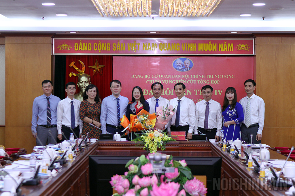 | Đại diện Lãnh đạo Ban, Đảng ủy, Công đoàn, Đoàn Thanh niên cơ quan Ban Nội chính Trung ương tặng hoa chúc mừng Đại hội Chi bộ Vụ Nghiên cứu tổng hợp nhiệm kỳ 2022-2025 |