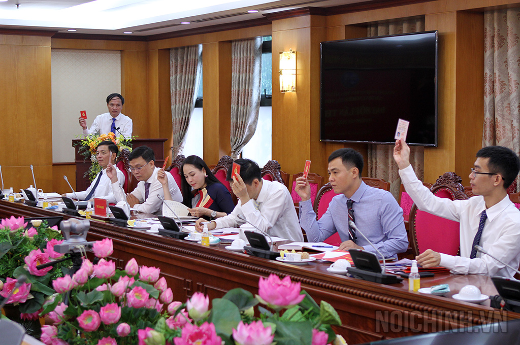 | Đảng viên Chi bộ Vụ Nghiên cứu tổng hợp bỏ phiếu bầu Ban Chi ủy nhiệm kỳ 2022-2025 |
