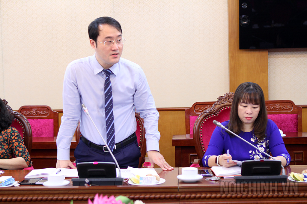 | Đồng chí Nguyễn Văn Trường, Phó Vụ trưởng, Phó Bí thư Chi bộ nhiệm kỳ 2022-2025 phát biểu tại Đại hội |