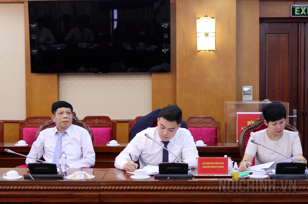 | Đại diện Đảng ủy, Công đoàn, Đoàn thanh niên Cơ quan Ban Nội chính Trung ương chúc mừng Ban Chi ủy Vụ Pháp luật nhiệm kỳ 2022-2025 |