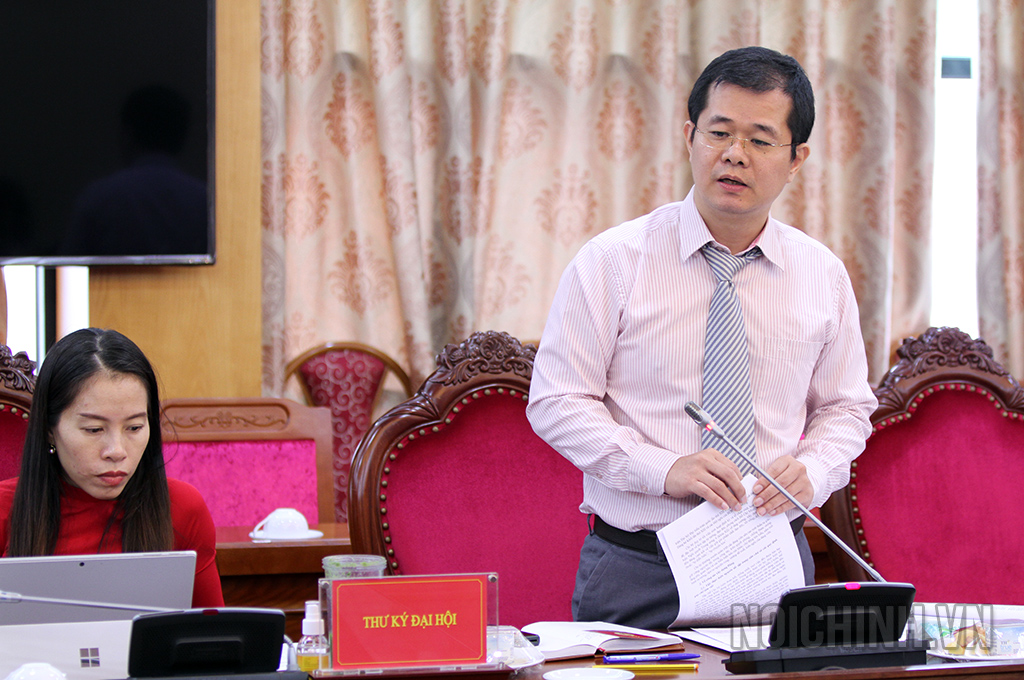 | Đồng chí Đỗ Văn Nhật, Phó Bí thư Chi bộ nhiệm kỳ 2020-2022 trình bày báo cáo chính trị và báo cáo tình hình đảng viên tham dự Đại hội |