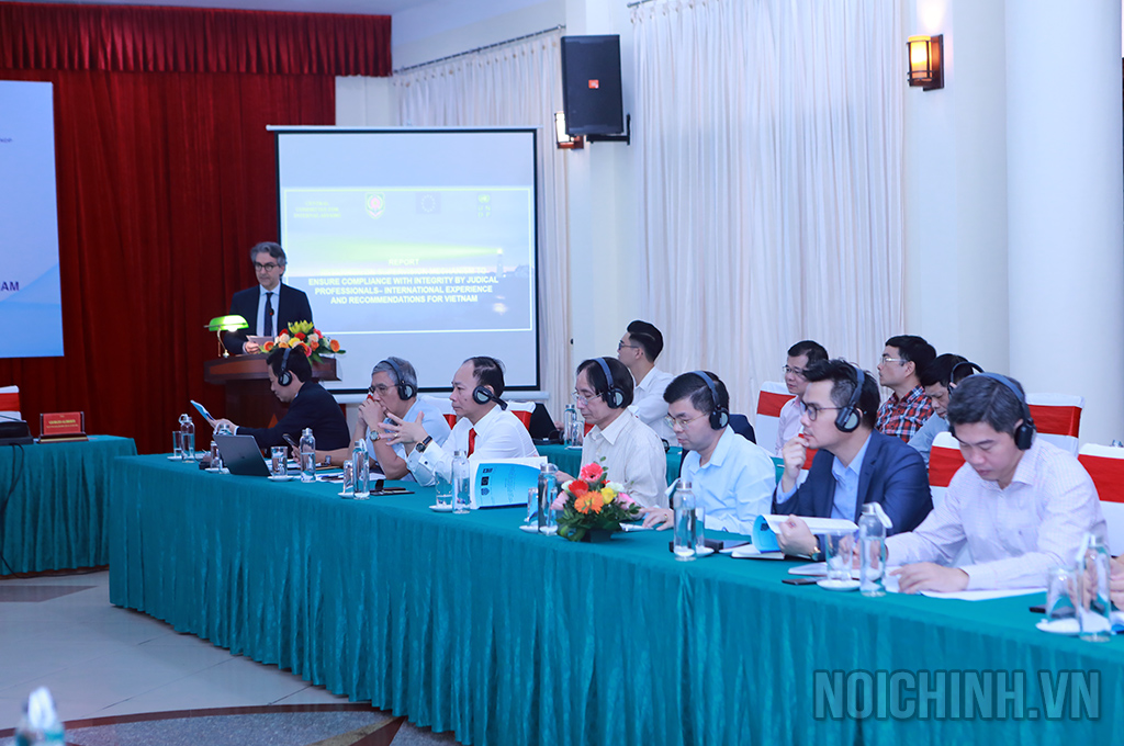 | Đồng chí Nguyễn Công Hồng, nguyên Phó Chủ nhiệm Ủy ban Tư pháp của Quốc hội, thành viên nhóm nghiên cứu phát biểu tại Hội thảo |