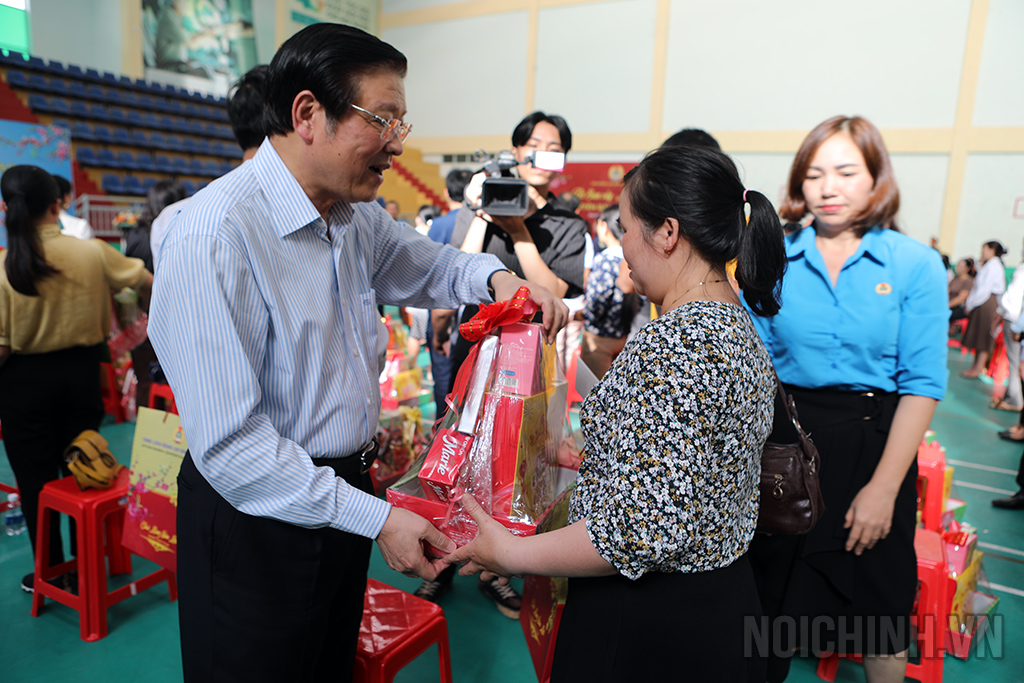 | Đồng chí Nguyễn Thái Học, Phó trưởng Ban Nội chính Trung ương tặng quà cho Công ty Môi trường đô thị Phú Yên |