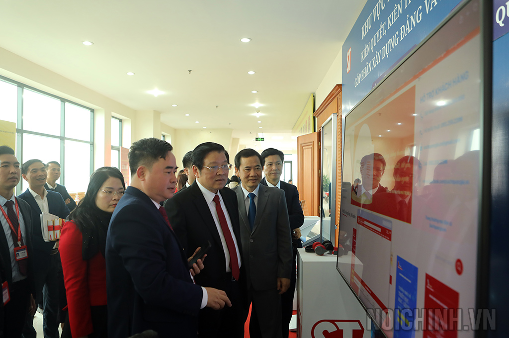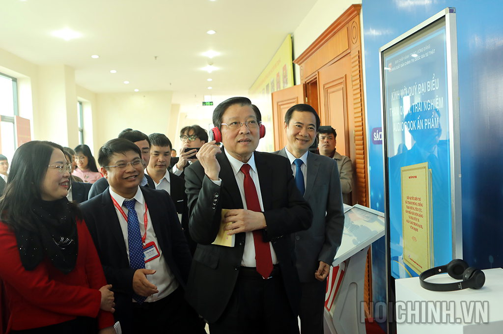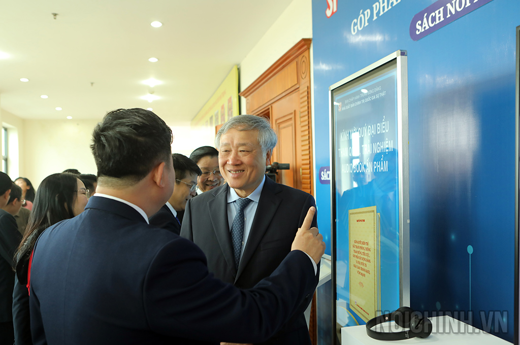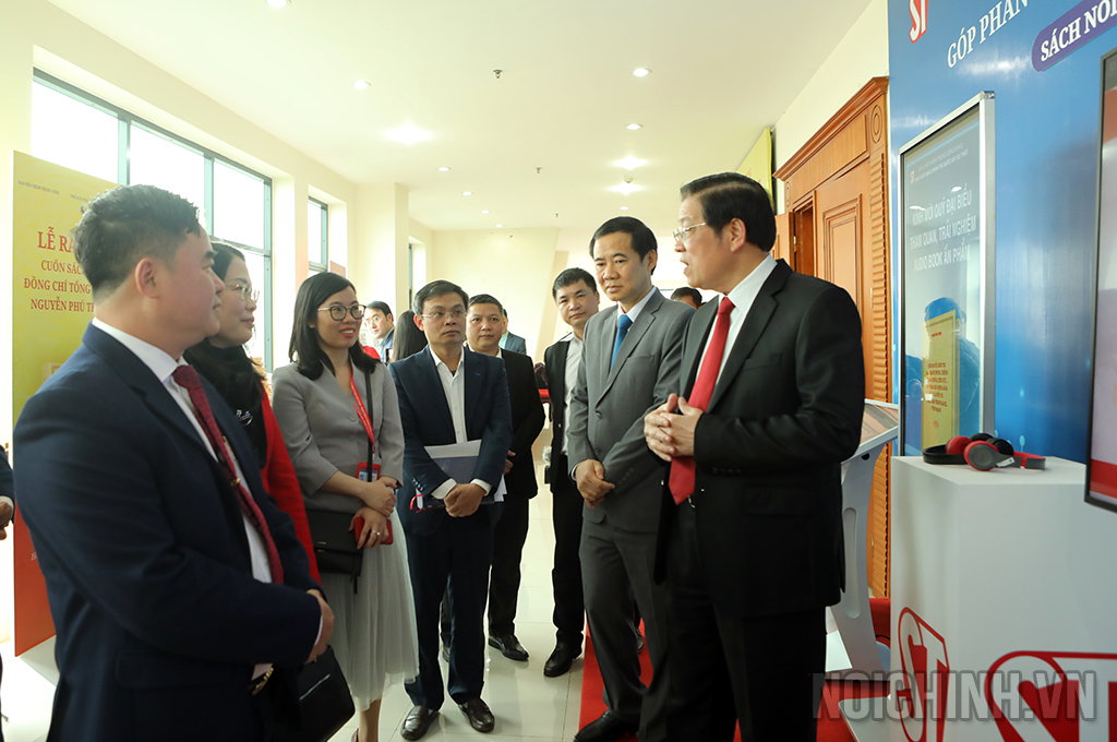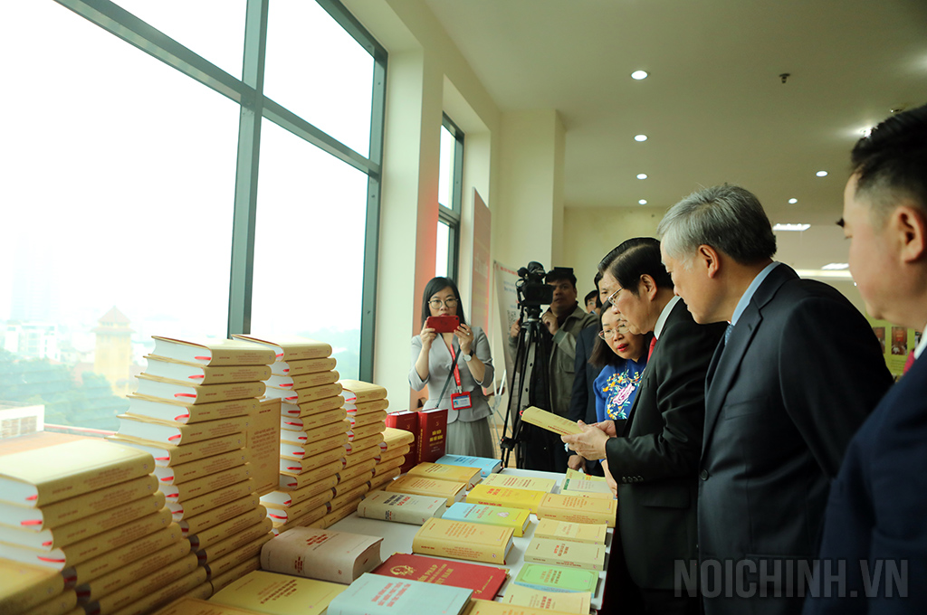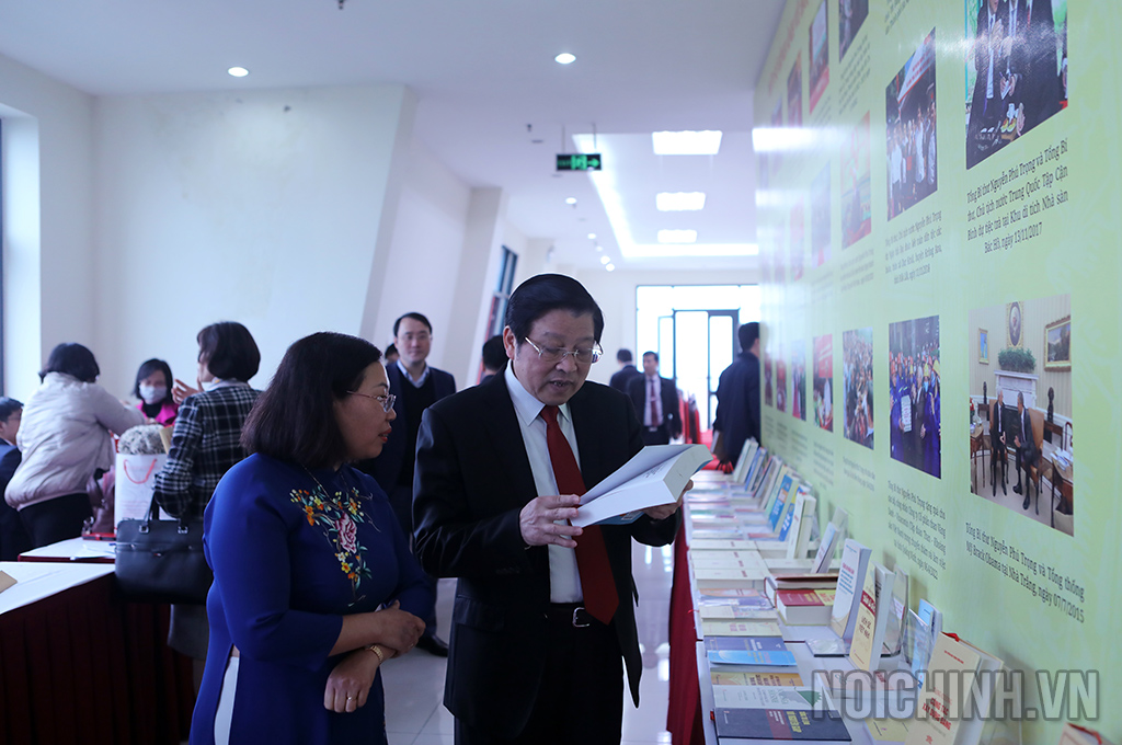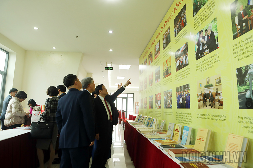 Các đại biểu thăm quan khu trưng bày sách của Tổng Bí thư Nguyễn Phú Trọng
