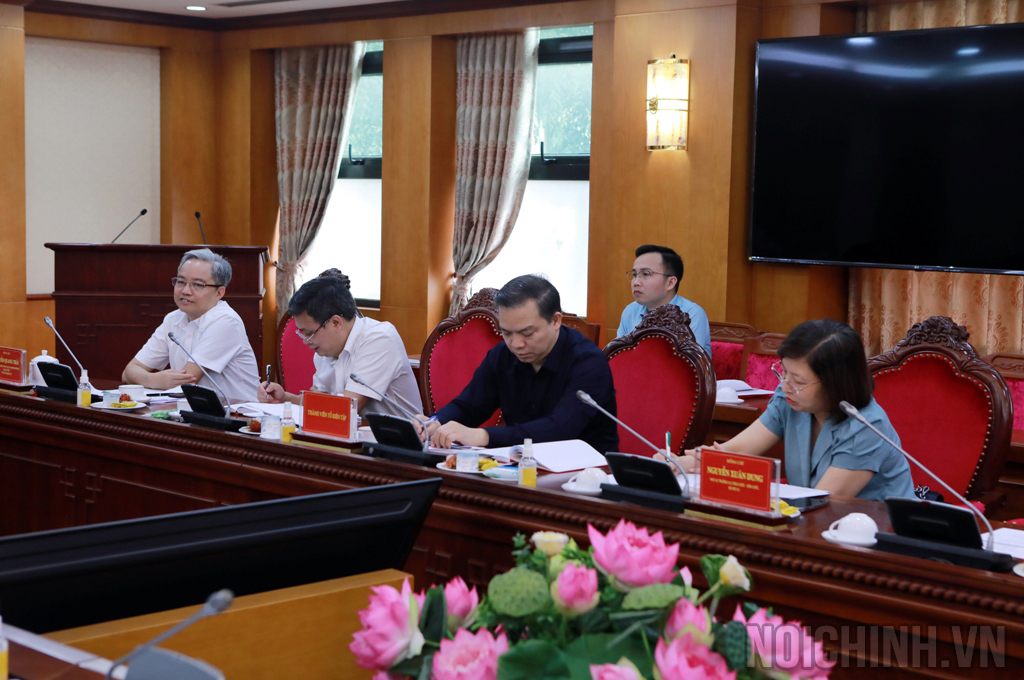 | Đồng chí Đặng Văn Dũng, Phó trưởng Ban Nội chính Trung ương, Tổ trưởng Tổ Biên tập xây dựng Đề án phát biểu tại Cuộc họp |