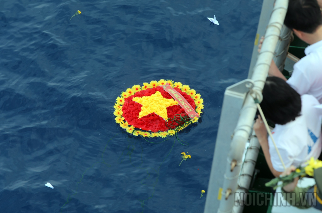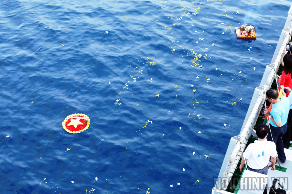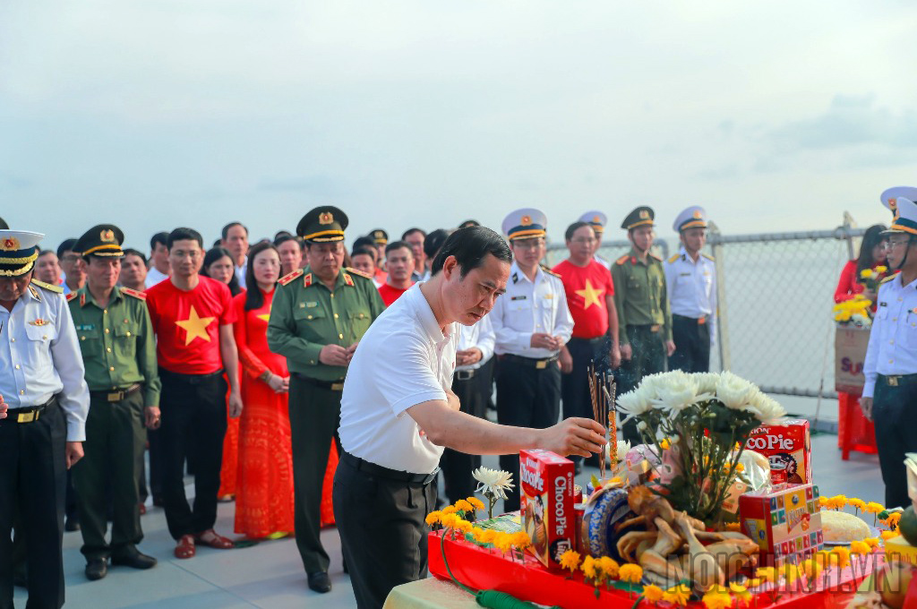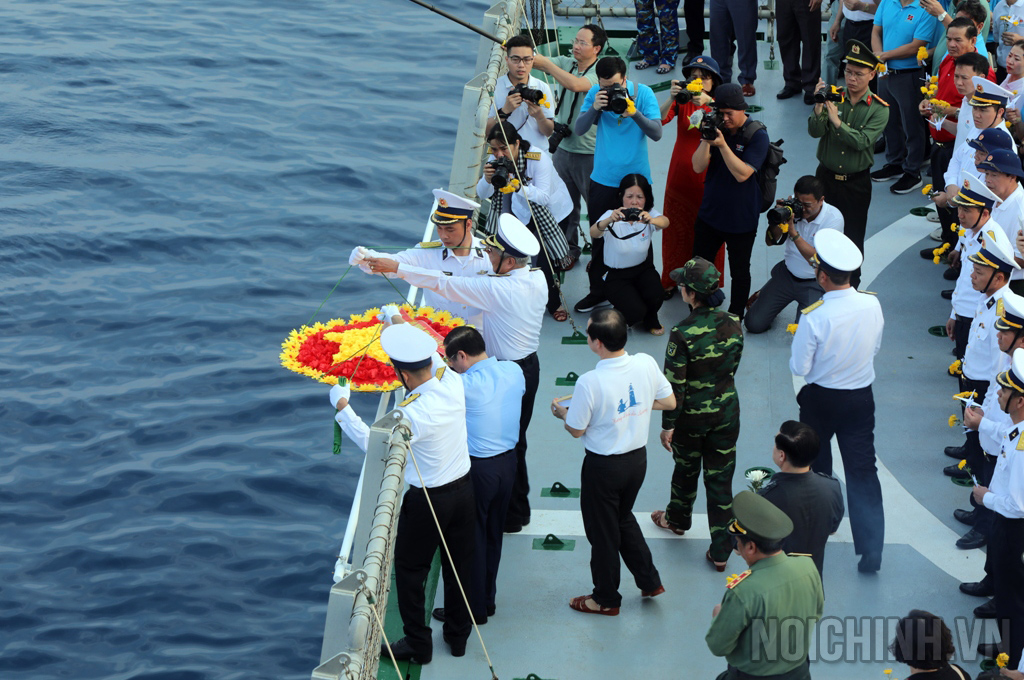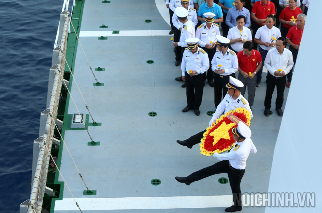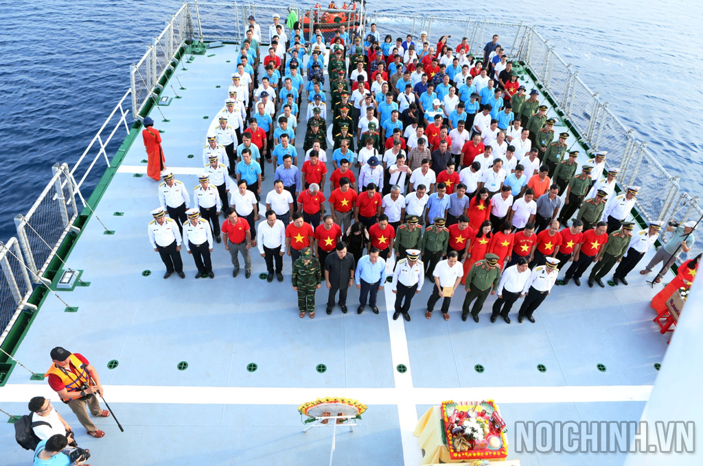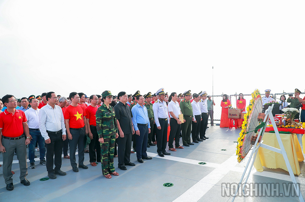 Đoàn Công tác số 3 năm 2023 tổ chức lễ tưởng niệm, tri ân cán bộ, chiến sĩ đã hy sinh vì nhiệm vụ bảo vệ chủ quyền biển, đảo khu vực biển Cô Lin, Len Đao, Gạc Ma trên tàu KN 491
