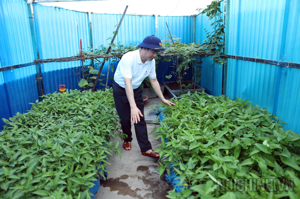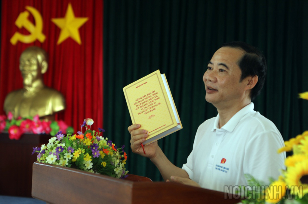 Đồng chí Nguyễn Thái Học, Phó Trưởng Ban Nội chính Trung ương giới thiệu và tặng sách của đồng chí Tổng Bí thư Nguyễn Phú Trọng cho cán bộ, chiến sĩ tại đảo Cô Lin
