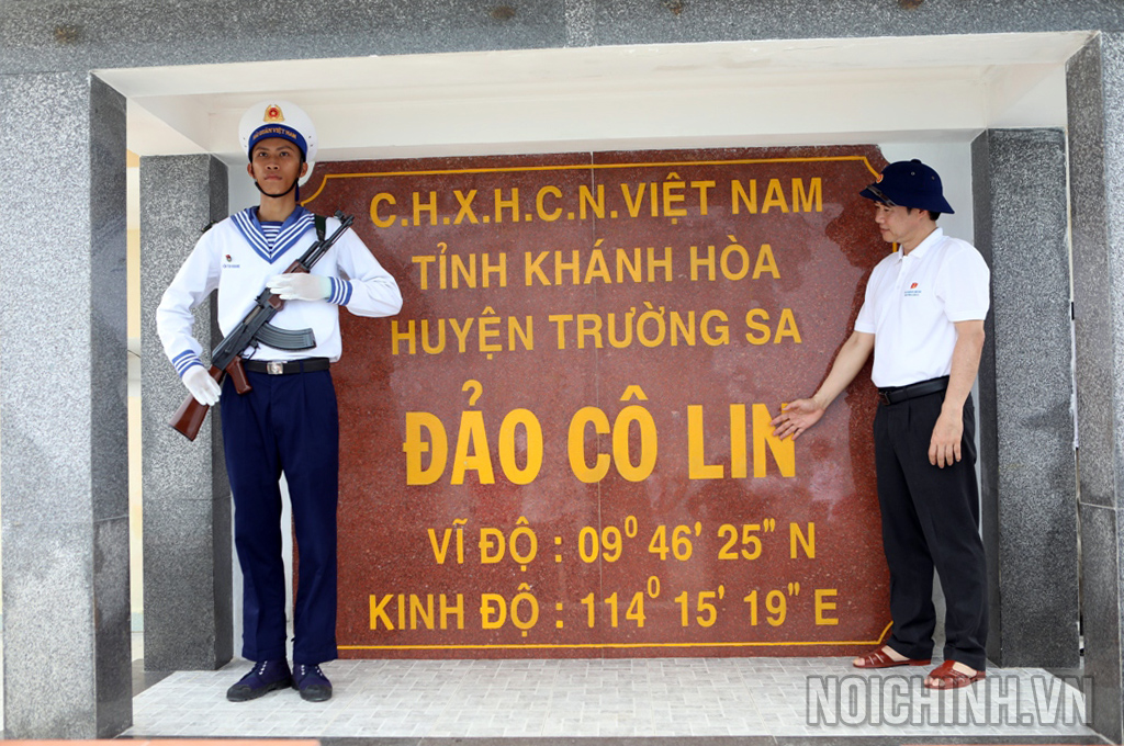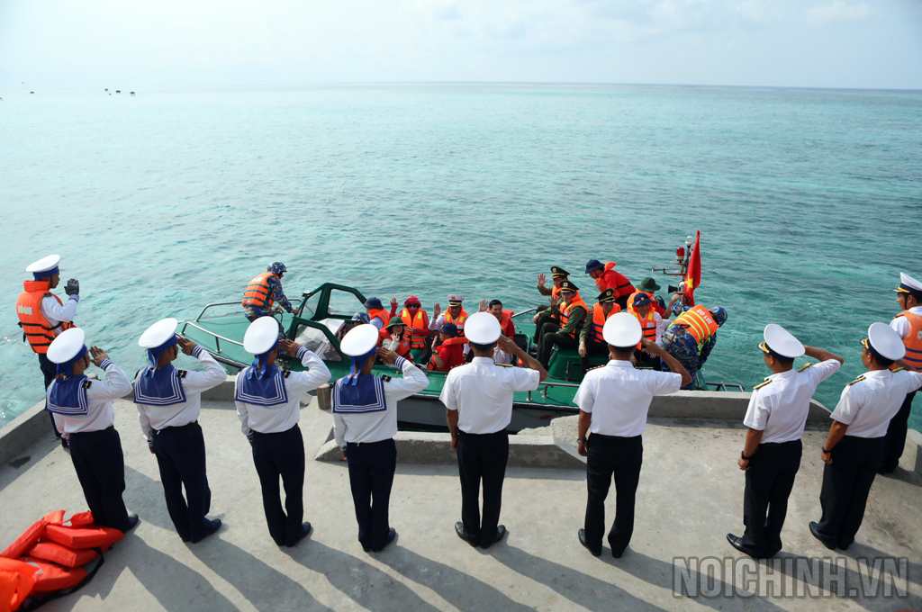 | Đồng chí Chuẩn đô đốc Trần Ngọc Quyết, Phó Tham mưu trưởng Quân chủng Hải quân Việt Nam, Trưởng đoàn Công tác số 3 cùng đại biểu thăm đảo Cô Lin |