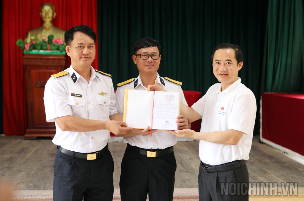 | Đồng chí Lại Xuân Môn, Ủy viên Trung ương Đảng, Phó Trưởng ban Thường trực Ban Tuyên giáo Trung ương, đồng chí Nguyễn Thái Học, Phó Trưởng Ban Nội chính Trung ương tặng sách cho cán bộ, chiến sĩ, nhân dân trên Đảo Sinh Tồn |