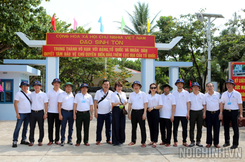 | Đoàn Đại biểu ngành Nội chính Đảng chụp ảnh lưu niệm tại cột mốc chủ quyền đảo Sinh Tồn |