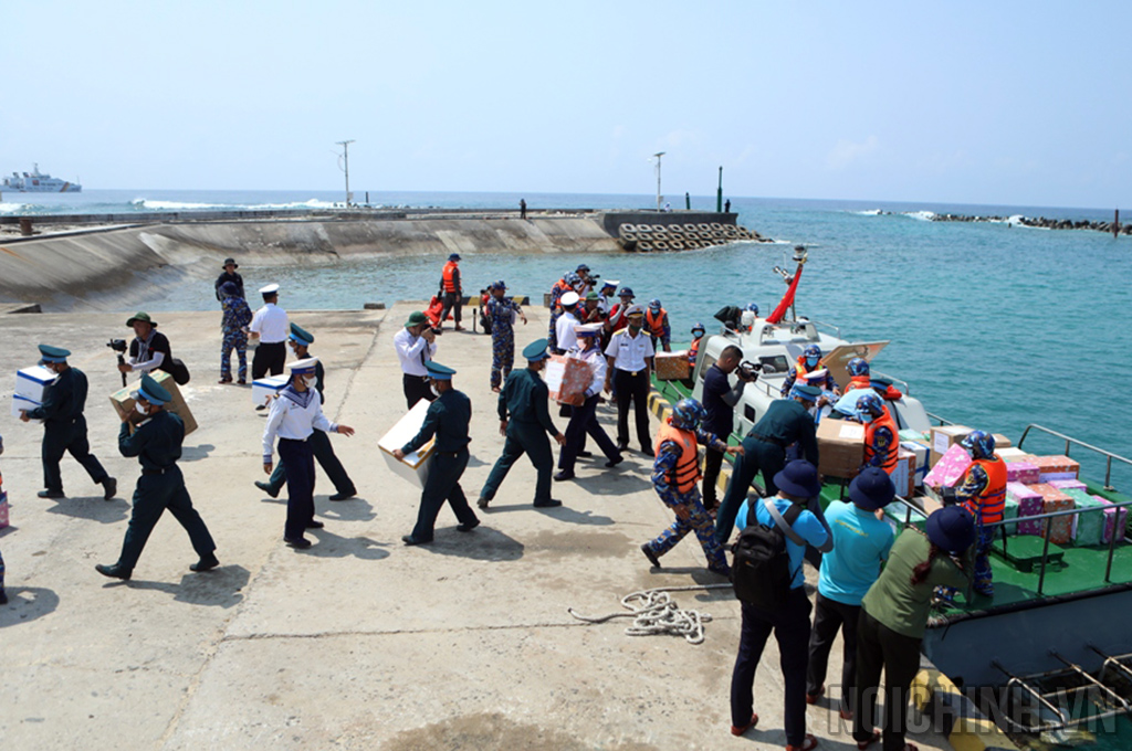 | Đồng chí Lại Xuân Môn, Ủy viên Trung ương Đảng, Phó trưởng Ban Thường trực Ban Tuyên giáo Trung ương, đồng chí Nguyễn Thái Học, Phó Trưởng Ban Nội chính Trung ương tặng sách cho cán bộ, chiến sĩ, nhân dân trên Đảo Song Tử Tây |