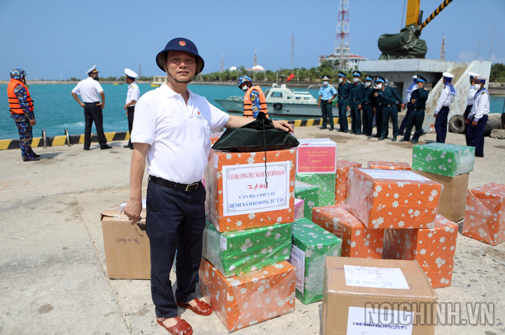 | Đồng chí Nguyễn Thái Học, Phó Trưởng Ban Nội chính Trung ương. Trưởng đoàn đại biểu ngành Nội chính Đảng trao quà tặng cán bộ, chiến sĩ, nhân dân trên Đảo Song Tử Tây |