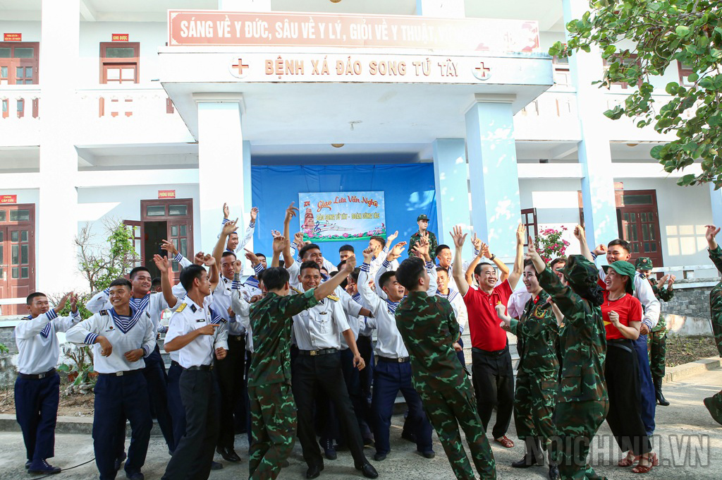 | Đồng chí Chuẩn đô đốc Trần Ngọc Quyết, Phó Tham mưu trưởng Quân chủng Hải quân Việt Nam, Trưởng đoàn Công tác số 3 và đồng chí Nguyễn Thái Học, Phó Trưởng Ban Nội chính Trung ương, Trưởng đoàn Đại biểu ngành Nội chính Đảng đặt chân lên đảo Song Tử Tây, huyện Trường Sa |