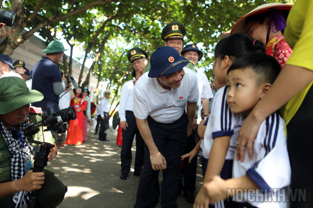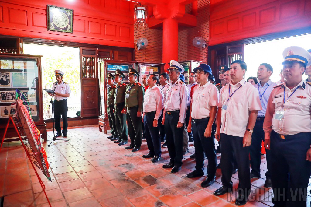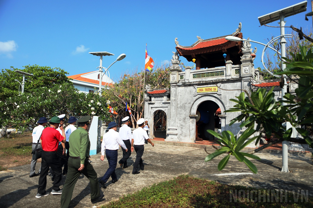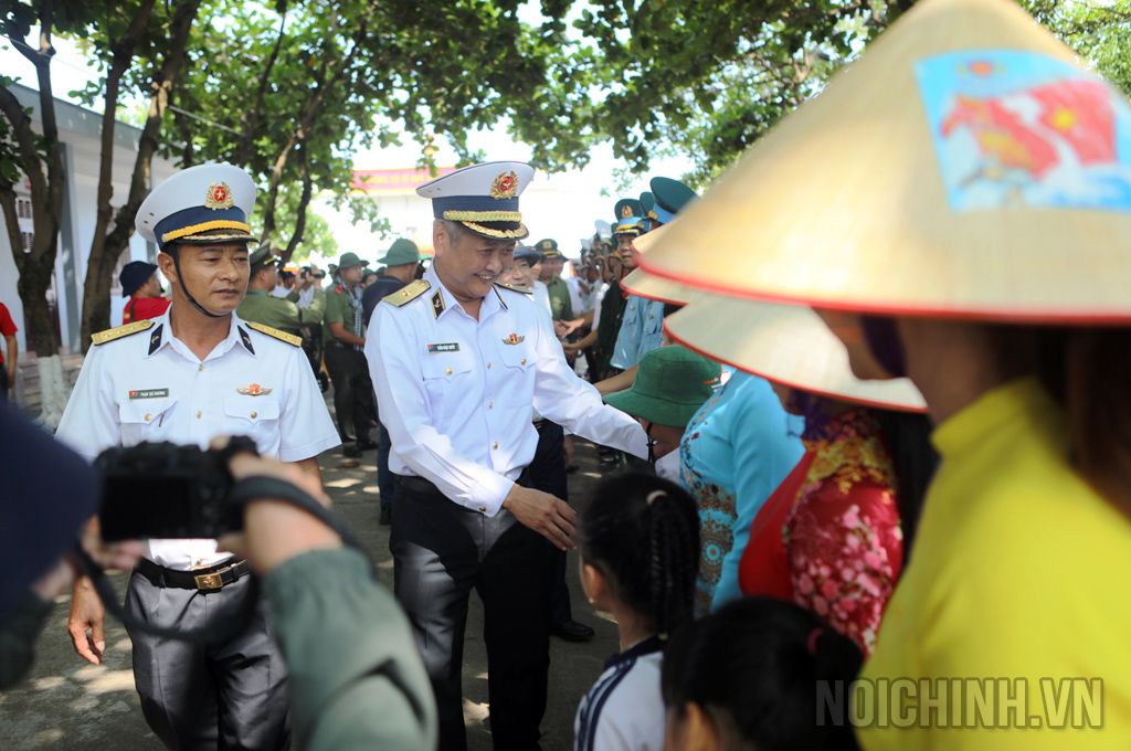 | Đồng chí Nguyễn Thái Học, Phó trưởng Ban Nội chính Trung ương, Trưởng Đoàn Đại biểu ngành Nội chính Đảng và các đại biểu tặng quà động viên cán bộ, chiến sĩ và nhân dân trên đảo Trường Sa lớn |