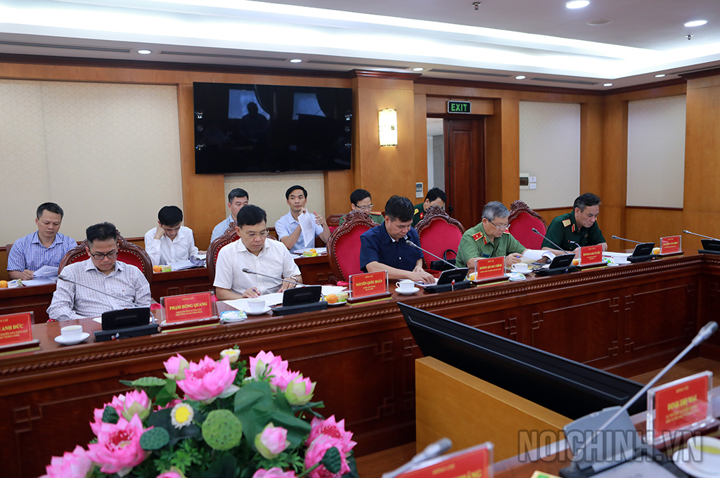 | Đồng chí Nguyễn Quốc Vinh, Vụ trưởng Vụ Cơ quan nội chính, Ban Nội chính Trung ương trình bày Báo cáo tại Hội nghị |