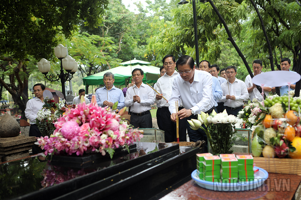 | Đồng chí Phan Đình Trạc, Ủy viên Bộ Chính trị, Bí thư Trung ương Đảng, Trưởng Ban Nội chính Trung ương cùng Đoàn cán bộ tại Nghĩa Trang Hàng Dương |
