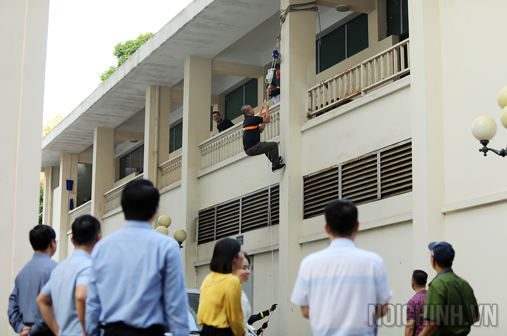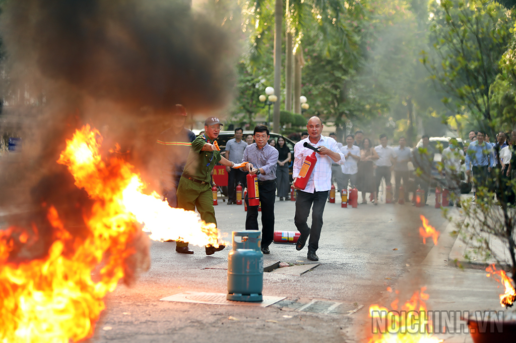 | Các giảng viên Trường Đại học phòng cháy và chữa cháy, Bộ Công an hướng dẫn phần thực hành |