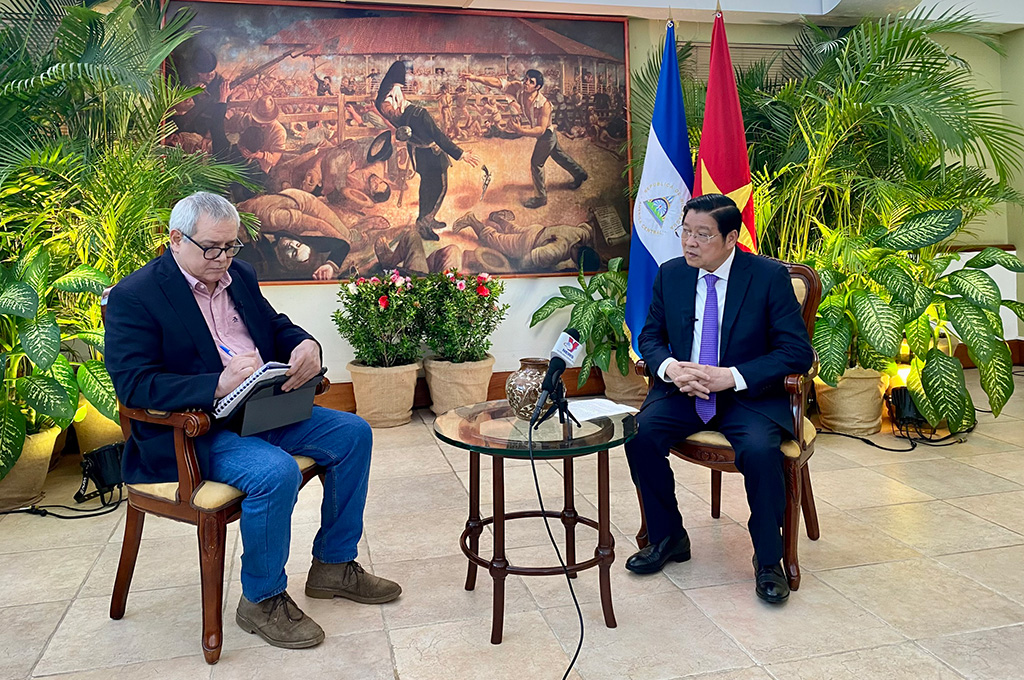 Đồng chí Phan Đình Trạc trả lời phỏng vấn truyền thông Nicaragua