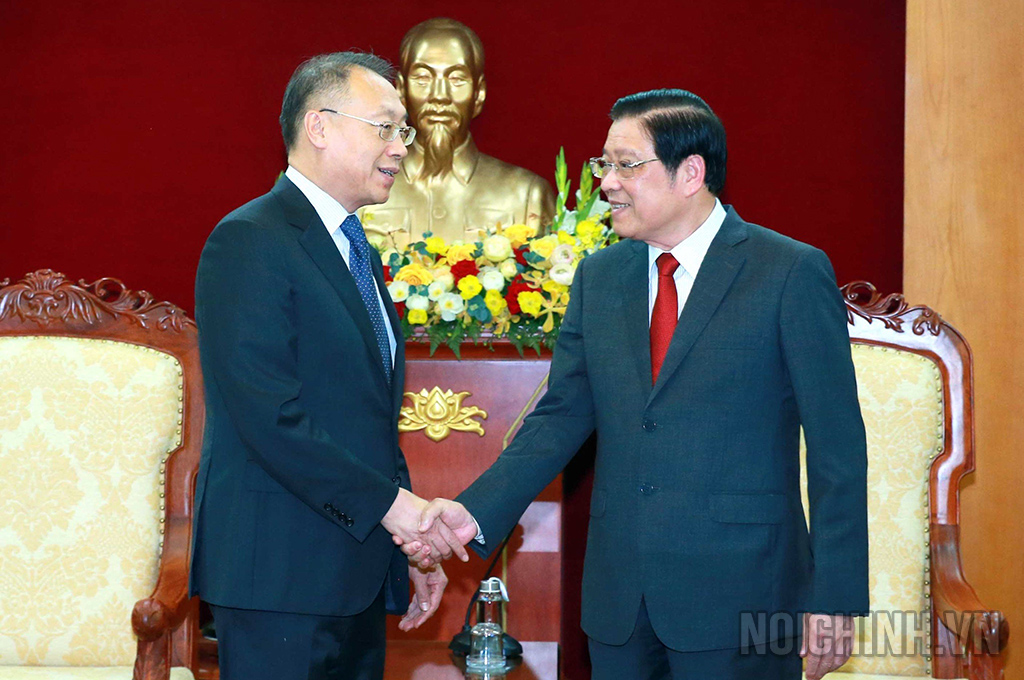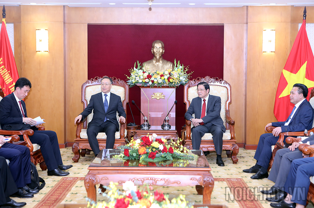 Đoàn Đại biểu Ủy ban Chính pháp Trung ương Đảng Cộng sản Trung Quốc hội kiến đồng chí Phan Đình Trạc, Ủy viên Bộ Chính trị, Bí thư Trung ương Đảng, Trưởng Ban Nội chính Trung ương