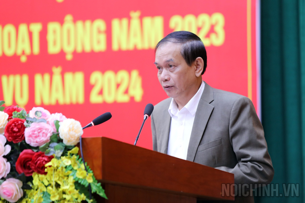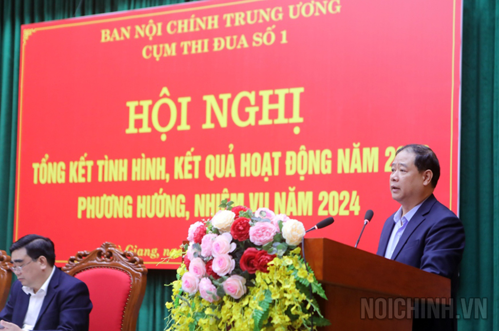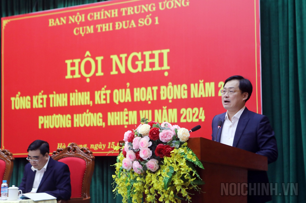 | Đồng chí Nguyễn Xuân Trường, Vụ Trưởng Vụ địa phương I, Ban Nội chinhs Trung ương phát biểu tại Hội nghị |