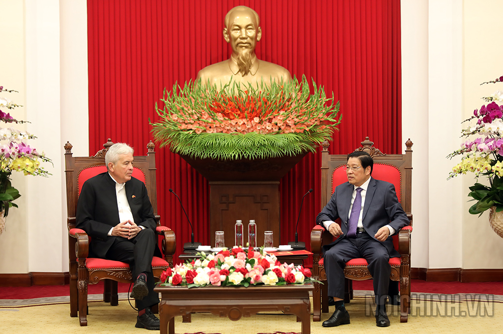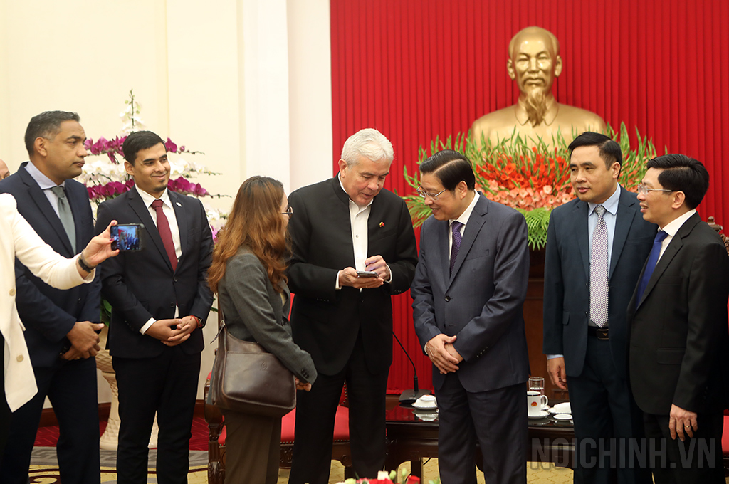 Đồng chí Phan Đình Trạc, Ủy viên Bộ Chính trị, Bí thư Trung ương Đảng, Trưởng Ban Nội chính Trung ương và Bộ trưởng Guyn-ma Cát-xtơ-rô Xô-tên-đô tại buổi tiếp