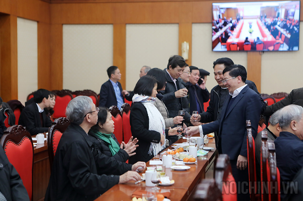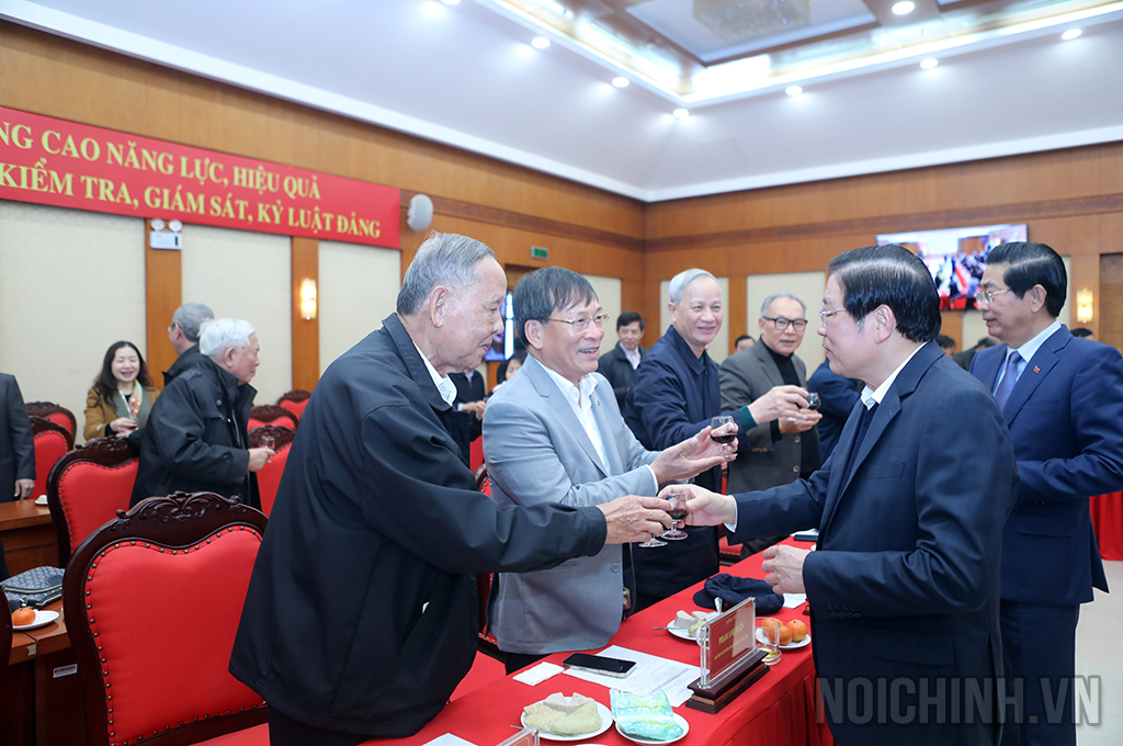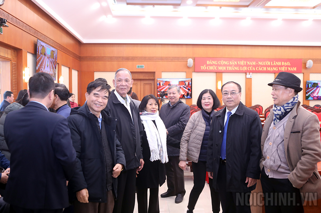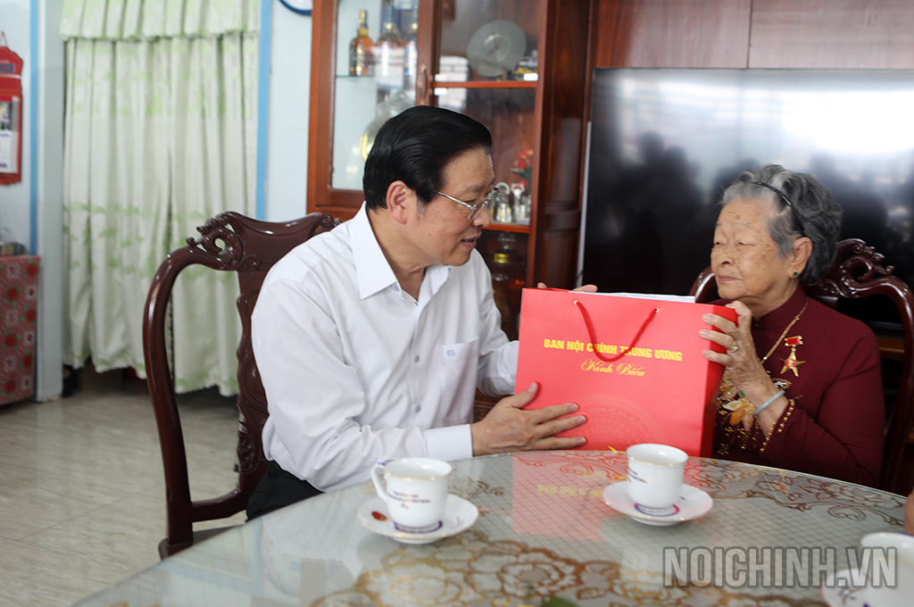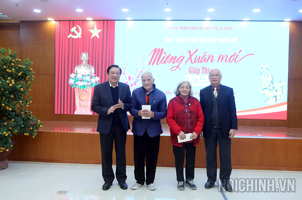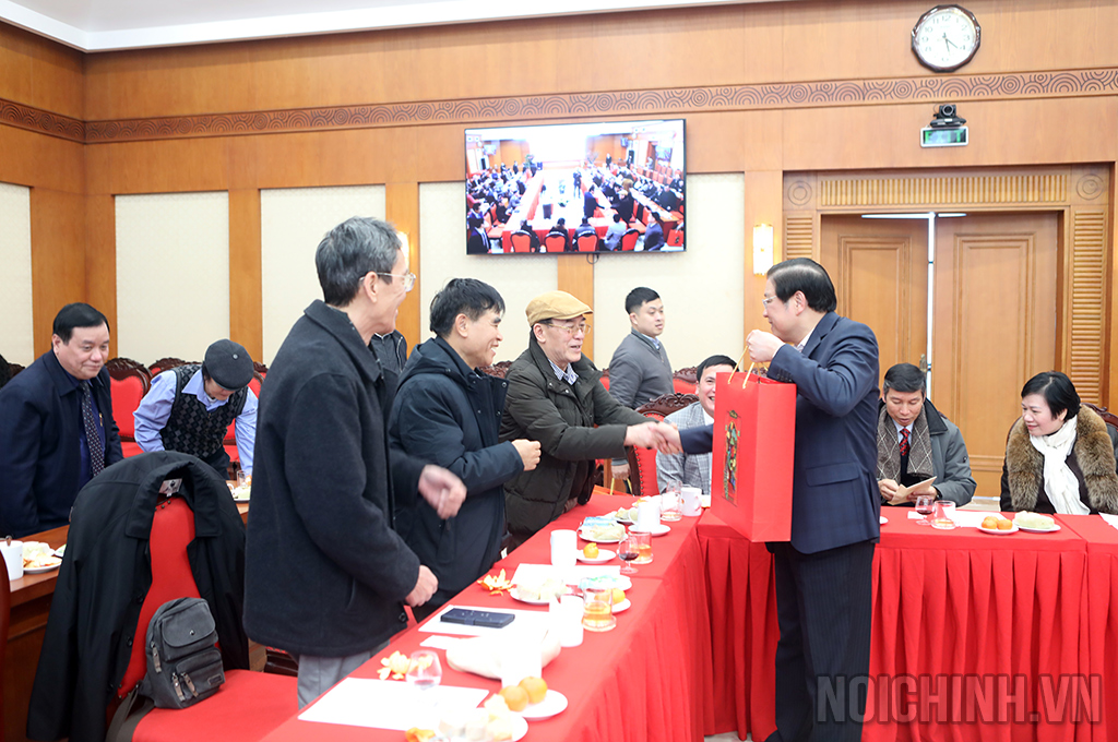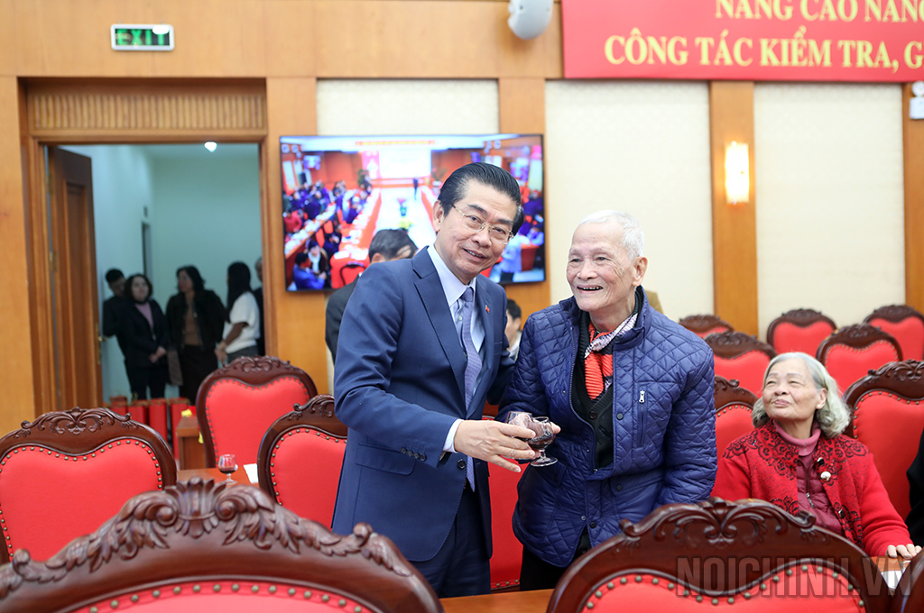 Đồng chí Phan Đình Trạc, Ủy viên Bộ Chính trị, Bí thư Trung ương Đảng, Trưởng Ban Nội chính Trung ương, Phó Trưởng ban Thường trực Ban Chỉ đạo Trung ương về PCTNTC, Phó Trưởng ban Thường trực Ban Chỉ đạo Cải cách tư pháp Trung ương chúc mừng cán bộ hưu trí có tuổi đời cao