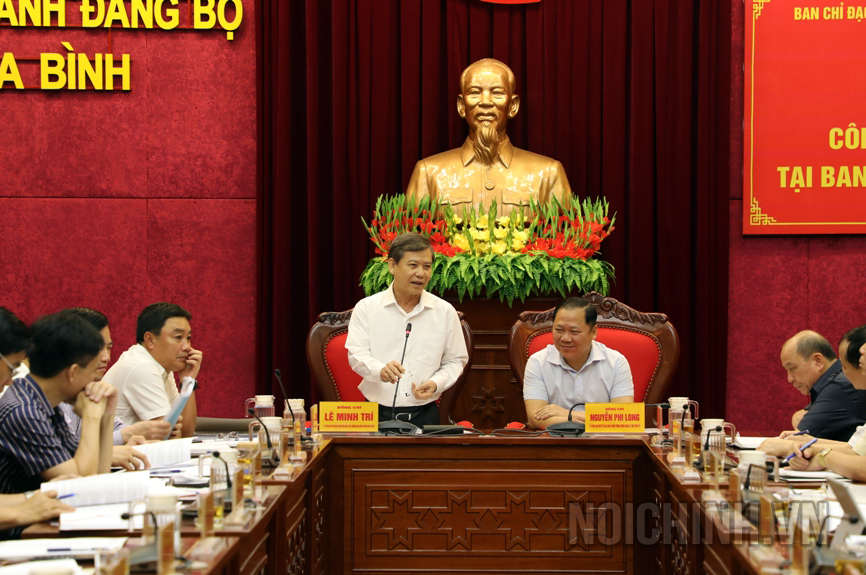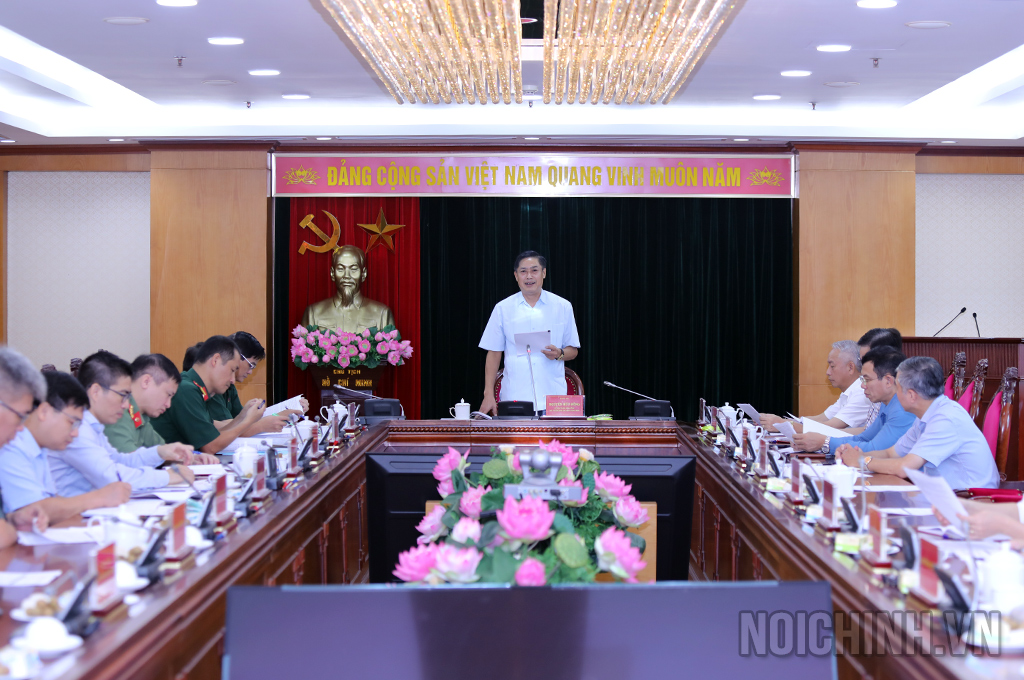 | Đồng chí Hoàng Anh Tuyên, Phó Chánh Văn phòng, Bộ Công an phát biểu tại Cuộc họp |