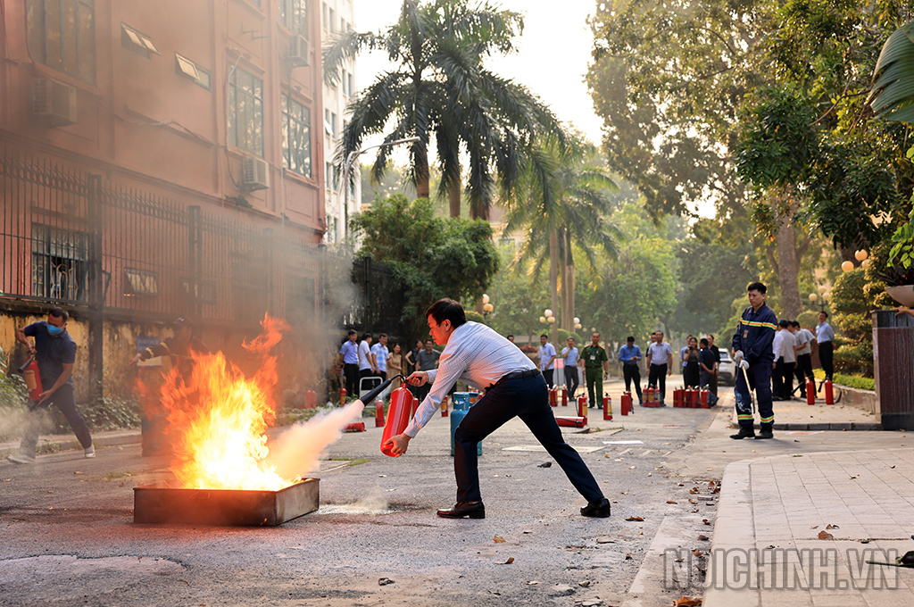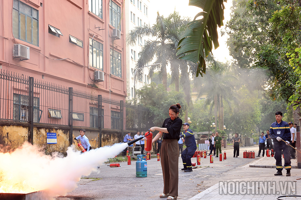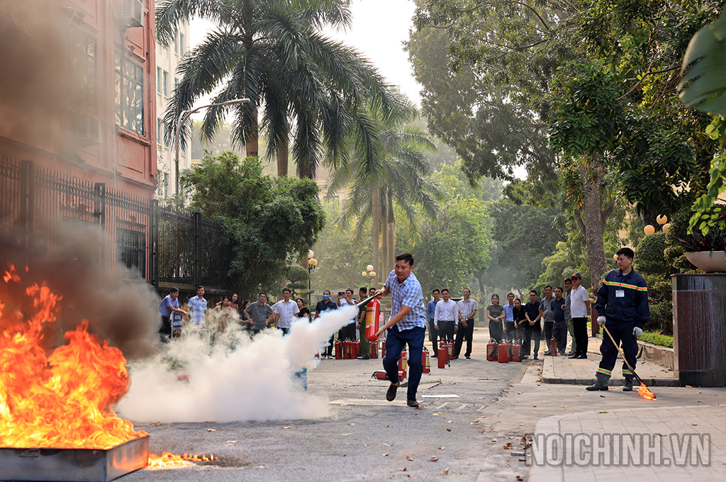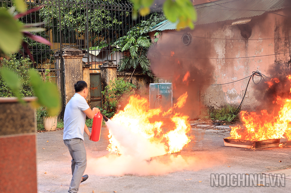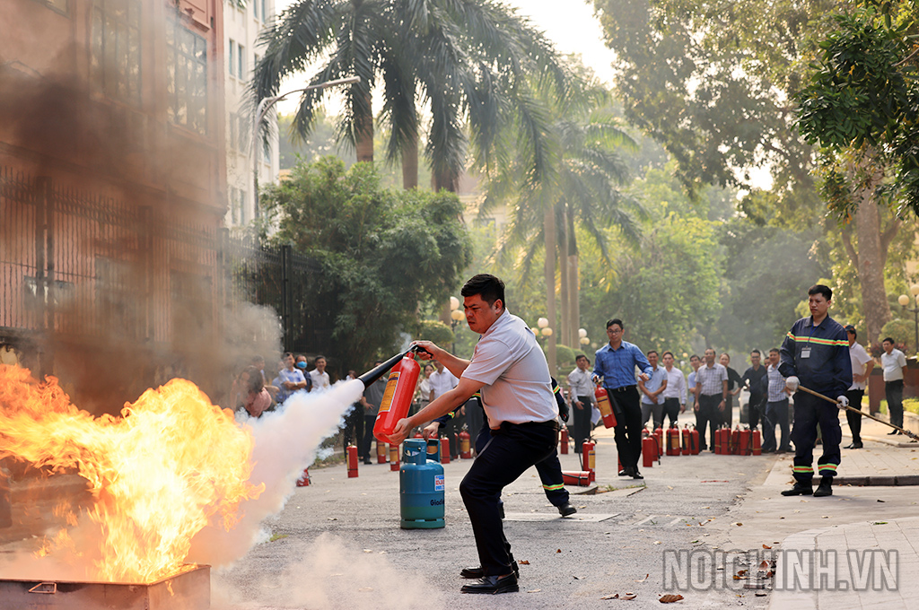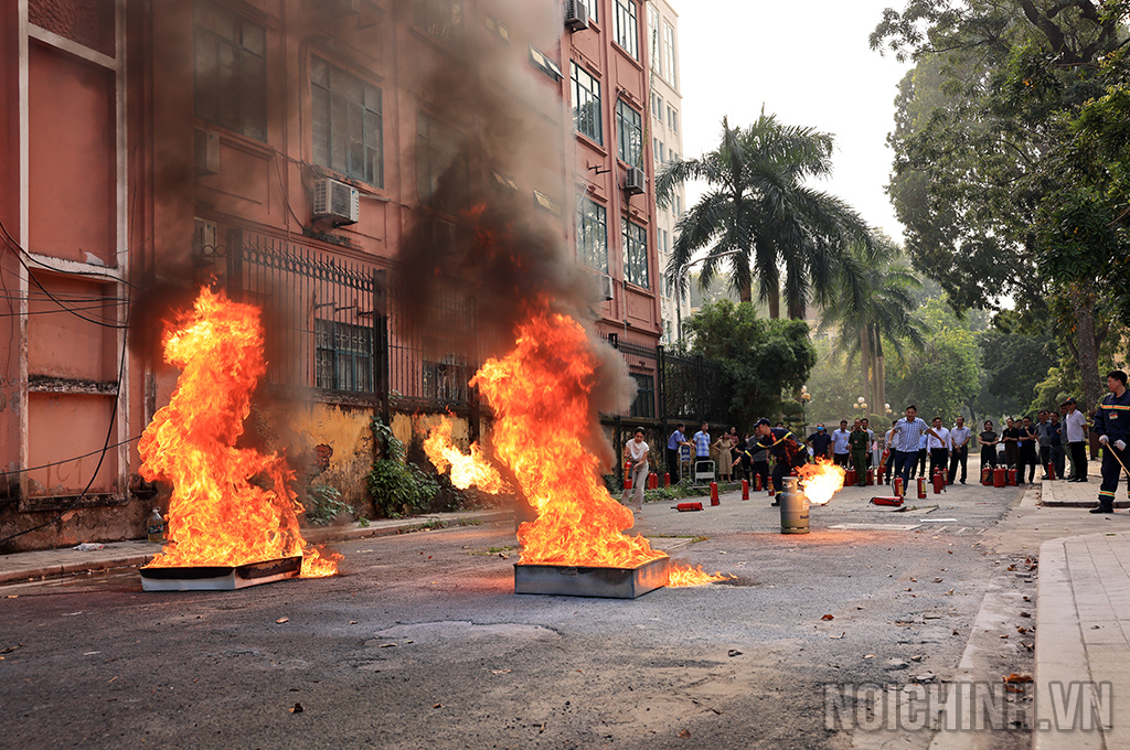 Một số hình ảnh thực hành dùng bình khí và bình bột dập tắt đám cháy