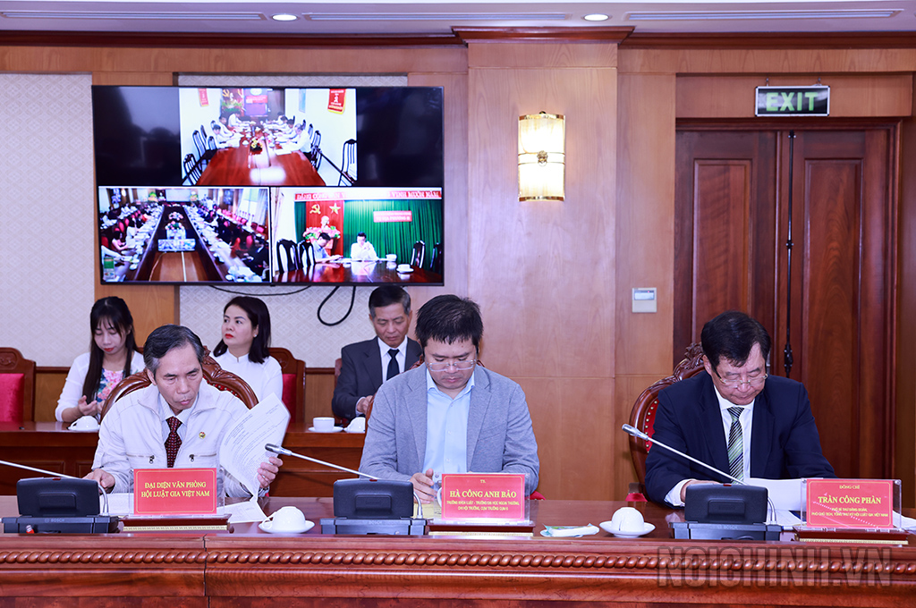 | Các đồng chí: TS. Võ Văn Dũng, Ủy viên Trung ương Đảng, Phó Trưởng ban Thường trực, Bí thư Đảng ủy cơ quan Ban Nội chính Trung ương; TS. Trần Công Phàn, Phó Bí thư đảng đoàn, Phó Chủ tịch, Tổng thư ký Hội Luật gia Việt Nam chúc mừng Ban Chấp hành Chi hội Luật gia Ban Nội chính Trung ương nhiệm kỳ 2024-2029 |