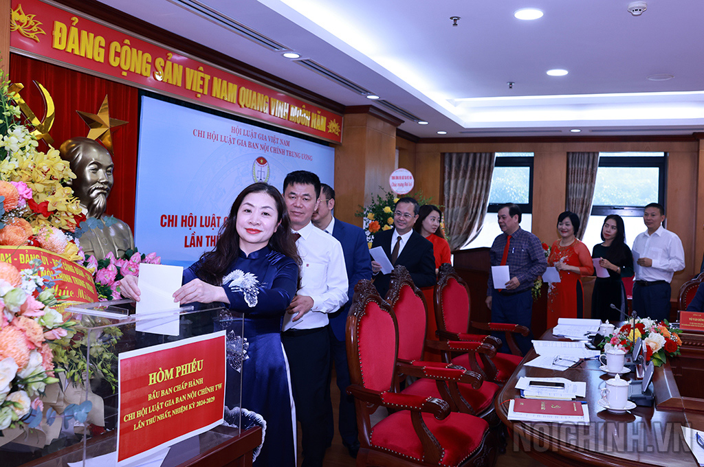 Đại biểu bỏ phiếu bầu Ban Chấp hành Chi hội Luật gia Ban Nội chính Trung ương nhiệm kỳ 2024-2029