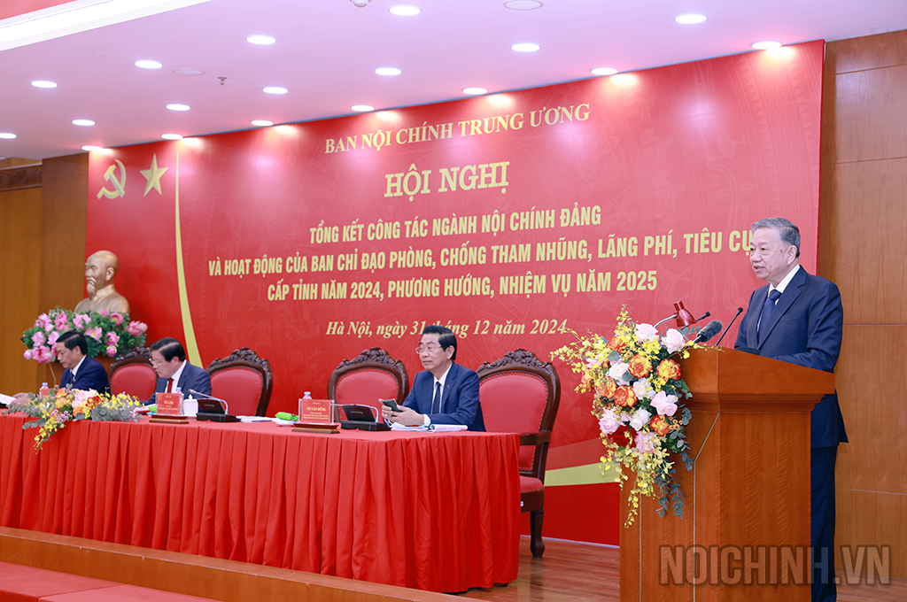 Đồng chí Tô Lâm, Ủy viên Bộ Chính trị, Tổng Bí thư, Trưởng Ban Chỉ đạo Trung ương về phòng, chống tham nhũng, lãng phí, tiêu cực phát biểu chỉ đạo