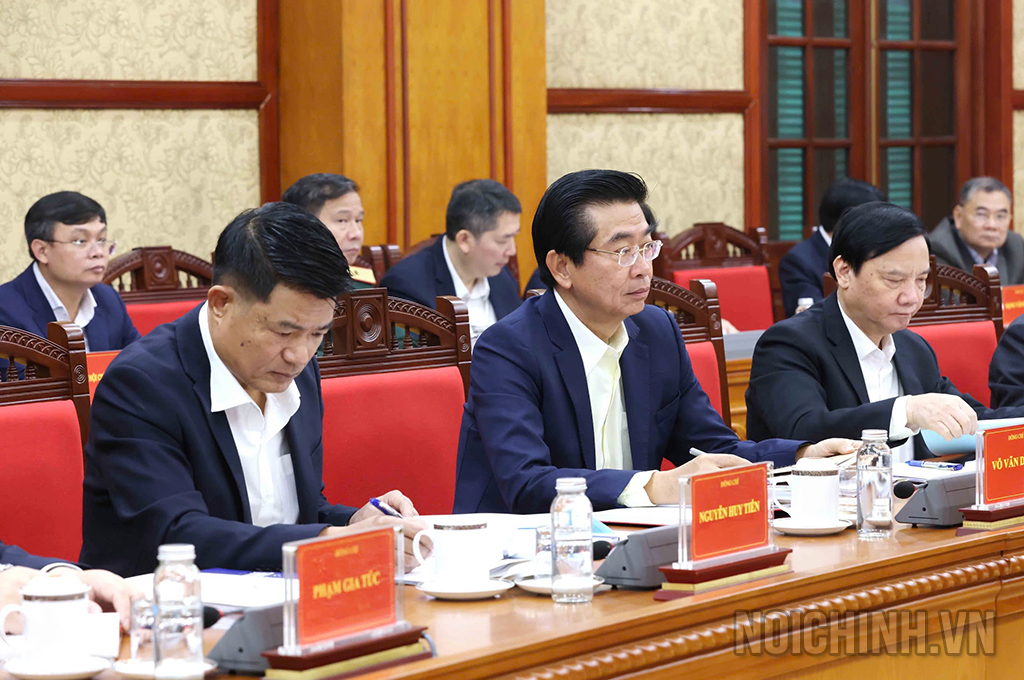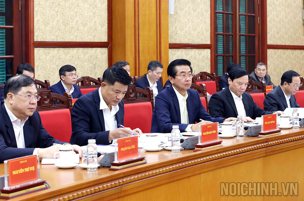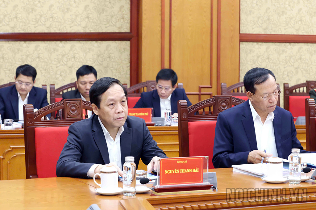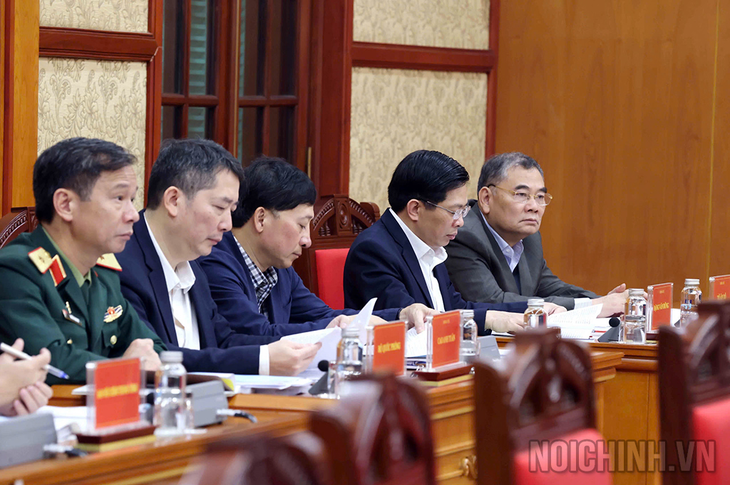 | Đồng chí Phan Đình Trạc, Ủy viên Bộ Chính trị, Bí thư Trung ương Đảng, Trưởng Ban Nội chính Trung ương, Phó Trưởng ban Thường trực Ban Chỉ đạo trình bày Báo cáo tại Phiên họp |