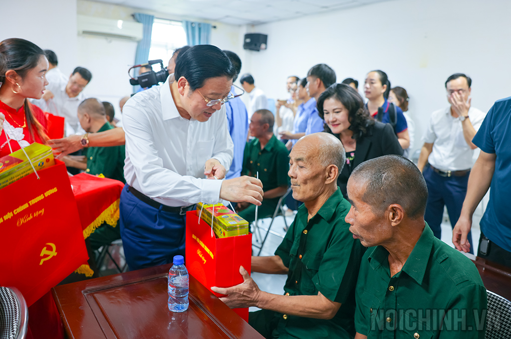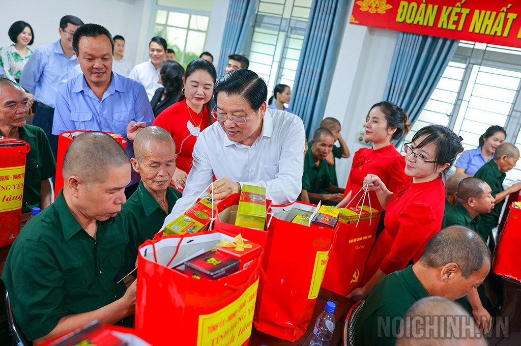 Đồng chí Phan Đình Trạc, Ủy viên Bộ Chính trị, Bí thư Trung ương Đảng, Trưởng Ban Nội chính Trung ương tặng quà thương binh, bệnh binh đang điều trị tại Trung tâm Bảo trợ xã hội tổng hợp Thái Bình