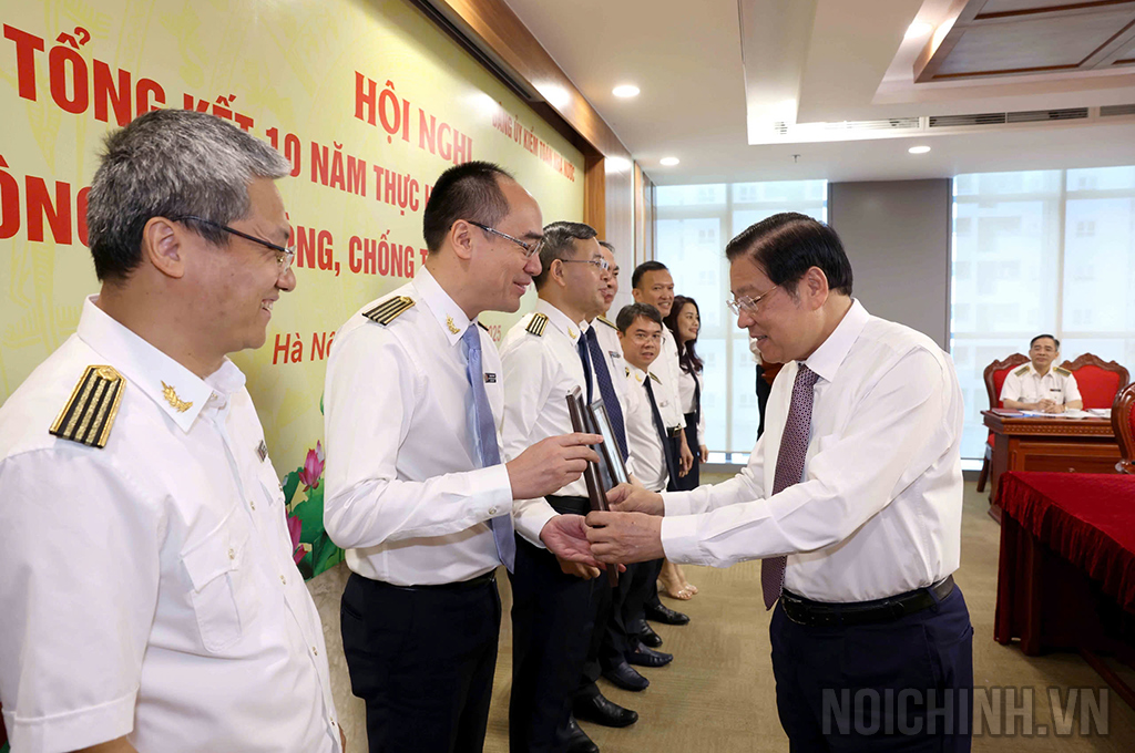 | Đồng chí Ngô Văn Tuấn, Ủy viên Trung ương Đảng, Bí thư Đảng ủy, Tổng Kiểm toán Nhà nước tặng Bằng khen cho 3 tập thể và 4 cá nhân Ban Nội chính Trung ương có thành tích xuất sắc trong công tác phối hợp |