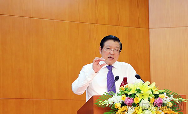 | Đồng chí Phan Đình Trạc, Bí thư Trung ương Đảng, Trưởng Ban Nội chính Trung ương, Phó Trưởng ban Thường trực Ban Chỉ đạo Trung ương về phòng, chống tham nhũng, Phó Trưởng ban Thường trực Ban Chỉ đạo Cải cách tư pháp Trung ương phát biểu kết luận buổi làm việc |