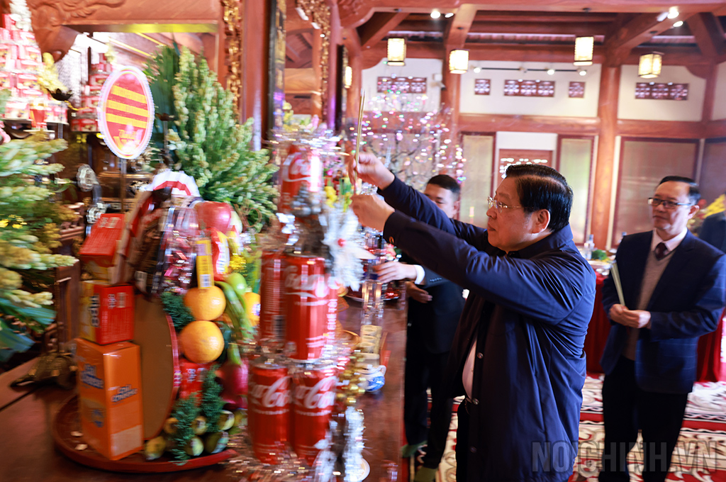 Đồng chí Phan Đình Trạc, Ủy viên Bộ Chính trị, Bí thư Trung ương Đảng, Trưởng Ban Nội chính Trung ương dâng hương tại đền thờ Anh hùng liệt sĩ tại Nghĩa trang Liệt sĩ quốc gia Vị Xuyên