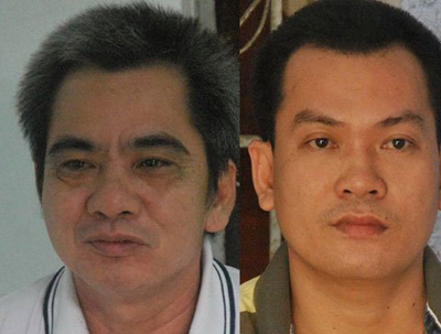 Các đối tượng Phạm Tiến Ngọ (trái) và Bùi Hữu Trí (phải)