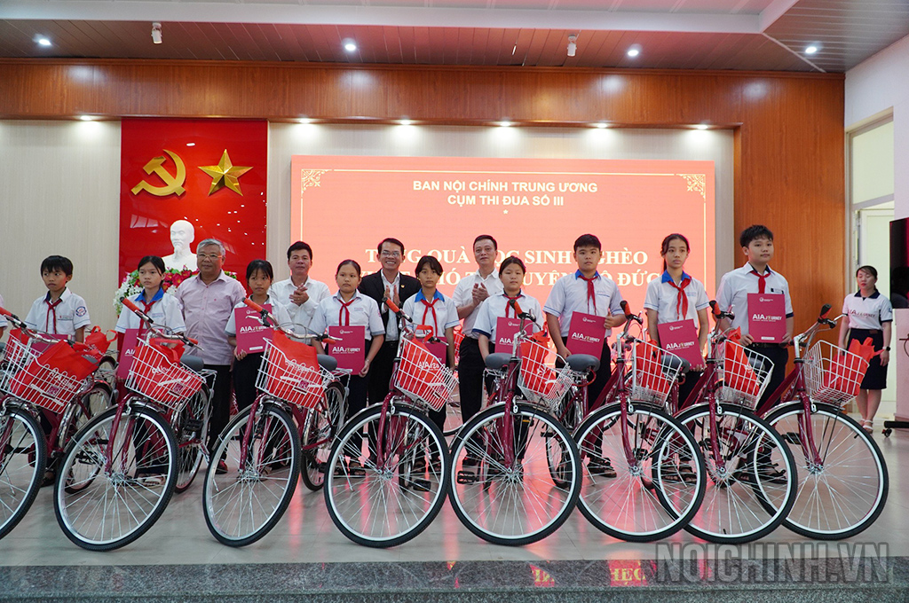 Chiều cùng ngày, Đoàn đã tổ chức trao tặng 30 suất quà, mỗi suất là 1 chiếc xe đạp cho 30 học sinh nghèo vượt khó; tặng 20 suất quà cho 20 đối tượng tái hòa nhập cộng đồng trên địa bàn huyện Mộ Đức; mỗi suất trị giá 1 triệu đồng. Qua đó, thể hiện tấm lòng của cán bộ, công chức Ban Nội chính các tỉnh ủy, thành ủy trong Cụm thi đua số III và các nhà hảo tâm hỗ trợ; góp phần giúp các em học sinh và các đối tượng tái hòa nhập cộng đồng trên địa bàn huyện Mộ Đức sớm vượt qua khó khăn, vươn lên trong cuộc sống.