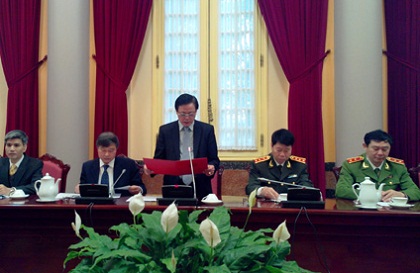 Ngày 17-3, Văn phòng Chủ tịch nước tổ chức họp báo công bố Lệnh của Chủ tịch nước về việc công bố Pháp lệnh Cảnh sát cơ động và Pháp lệnh trình tự, thủ tục xem xét, quyết định các biện pháp xử lý hành chính tại Tòa án nhân dân. Đồng chí Giang Sơn, Phó Chủ nhiệm Thường trực Văn phòng Chủ tịch nước chủ trì buổi họp báo.