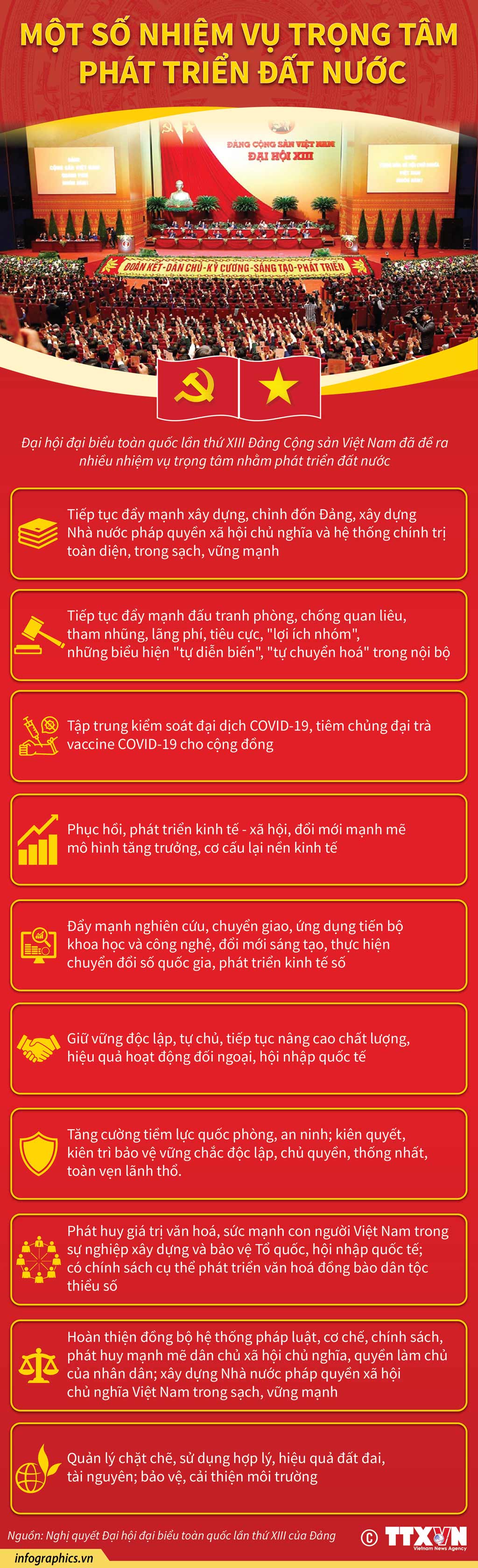 Đại hội đại biểu toàn quốc lần thứ XIII Đảng Cộng sản Việt Nam đã đề ra nhiều nhiệm vụ trọng tâm nhằm phát triển đất nước.