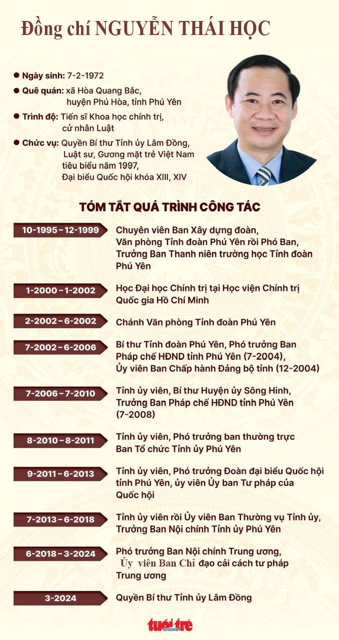 Bộ Chính trị điều động, phân công đồng chí Nguyễn Thái Học, Phó Trưởng Ban Nội chính Trung ương giữ chức Quyền Bí thư Tỉnh ủy Lâm Đồng